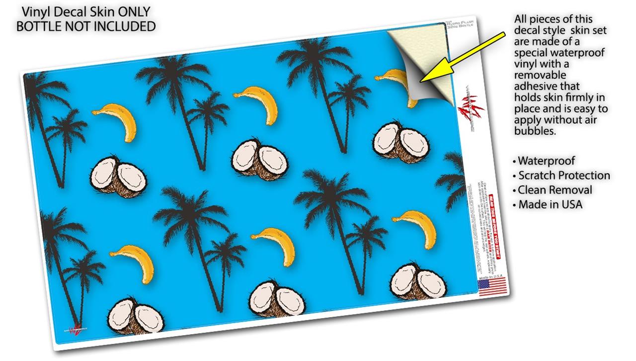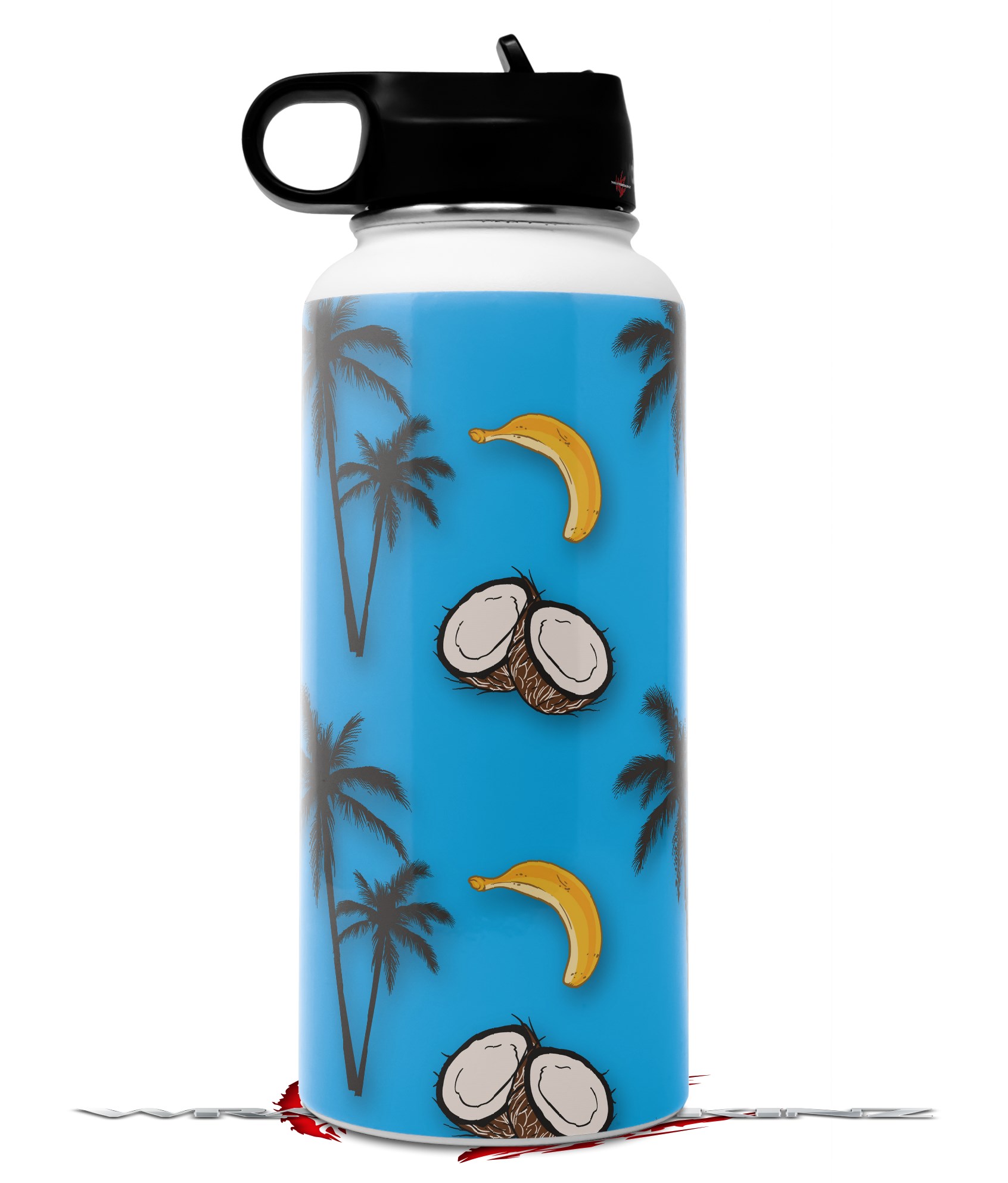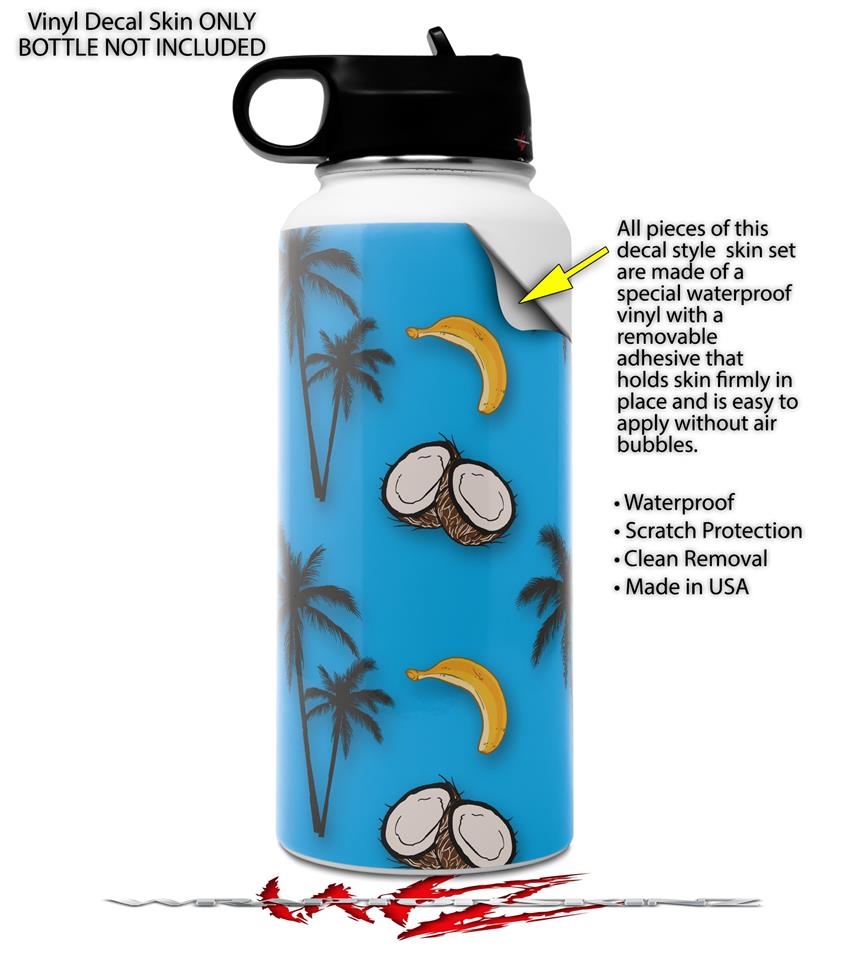 Skin Wrap Decal compatible with Hydro Flask Wide Mouth Bottle 32oz Coconuts Palm Trees and Bananas Blue Medium (BOTTLE NOT INCLUDED)