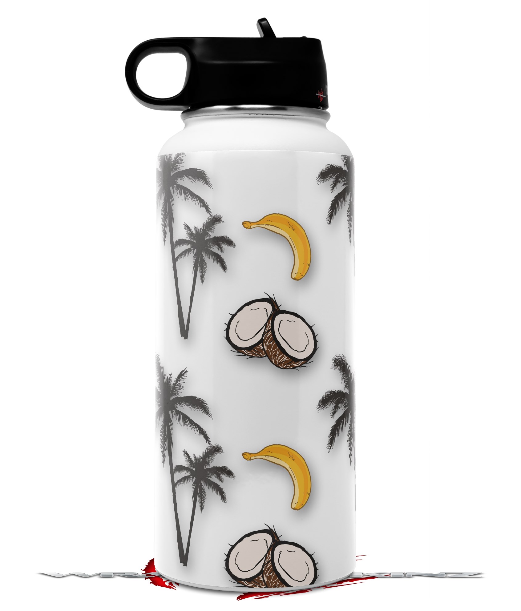Skin Wrap Decal compatible with Hydro Flask Wide Mouth Bottle 32oz Coconuts Palm Trees and Bananas White (BOTTLE NOT INCLUDED)