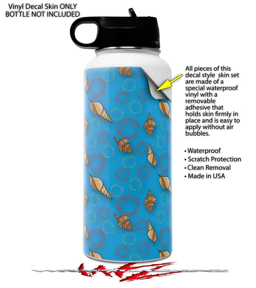Skin Wrap Decal compatible with Hydro Flask Wide Mouth Bottle 32oz Sea Shells 02 Blue Medium (BOTTLE NOT INCLUDED)