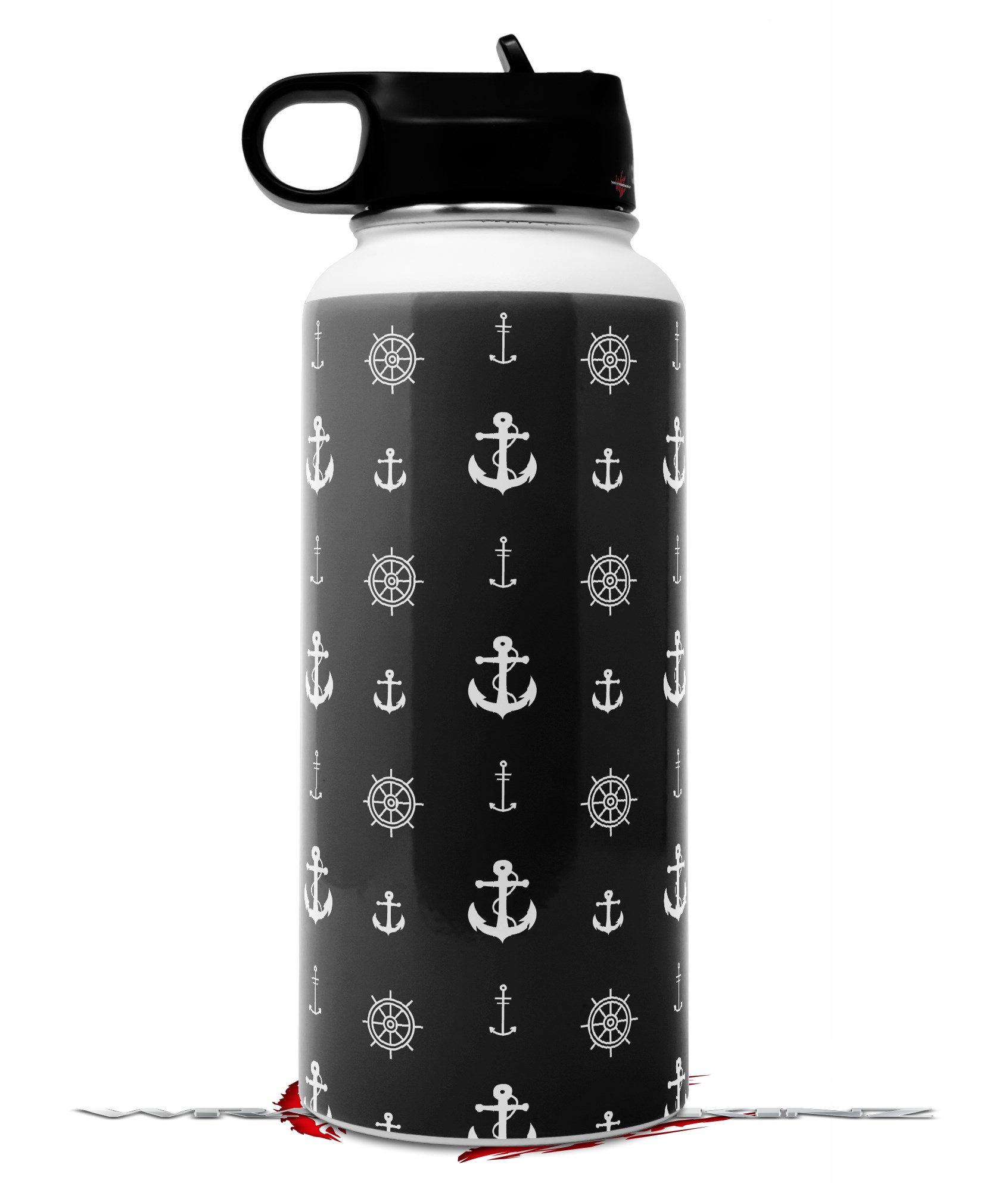 Skin Wrap Decal compatible with Hydro Flask Wide Mouth Bottle 32oz Nautical Anchors Away 02 Black (BOTTLE NOT INCLUDED)