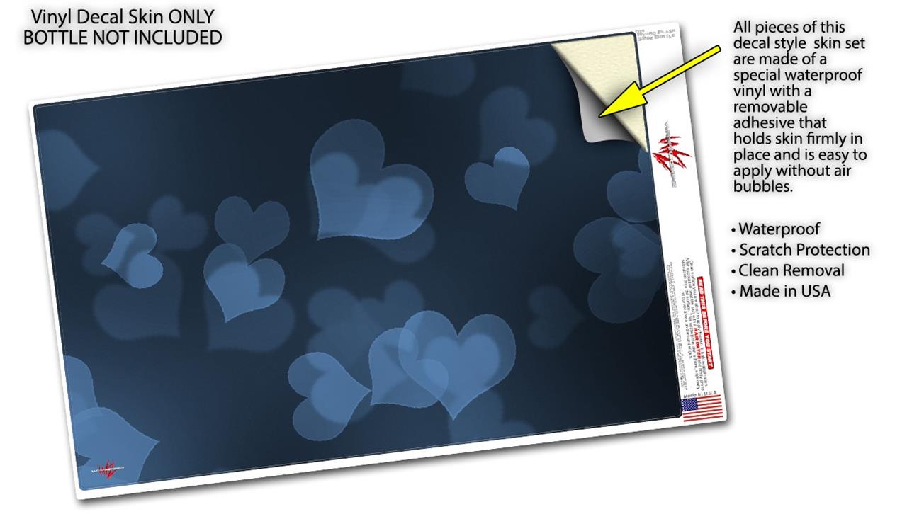 Skin Wrap Decal compatible with Hydro Flask Wide Mouth Bottle 32oz Bokeh Hearts Blue (BOTTLE NOT INCLUDED)