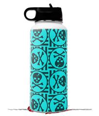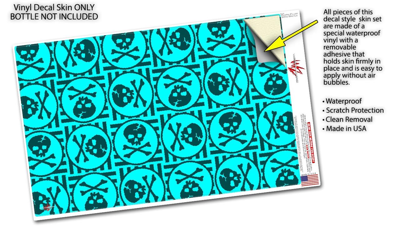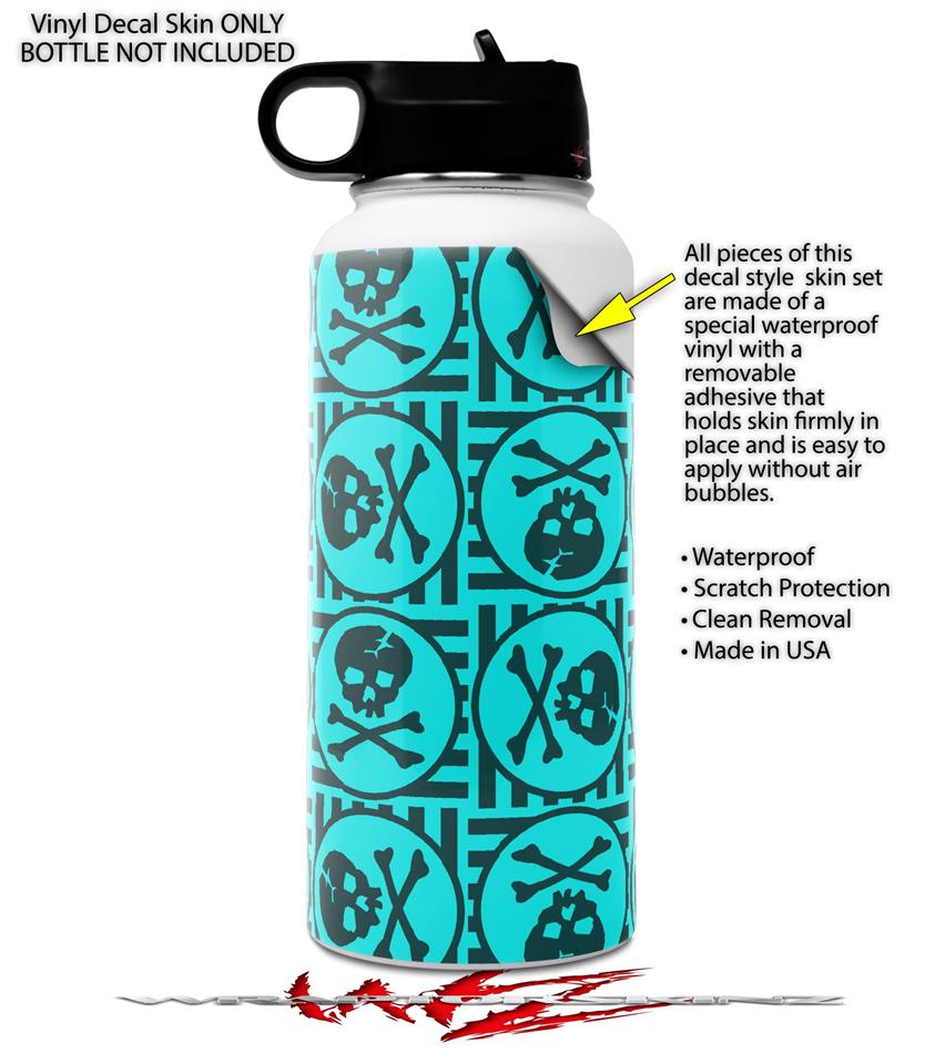 Skin Wrap Decal compatible with Hydro Flask Wide Mouth Bottle 32oz Skull Patch Pattern Blue (BOTTLE NOT INCLUDED)