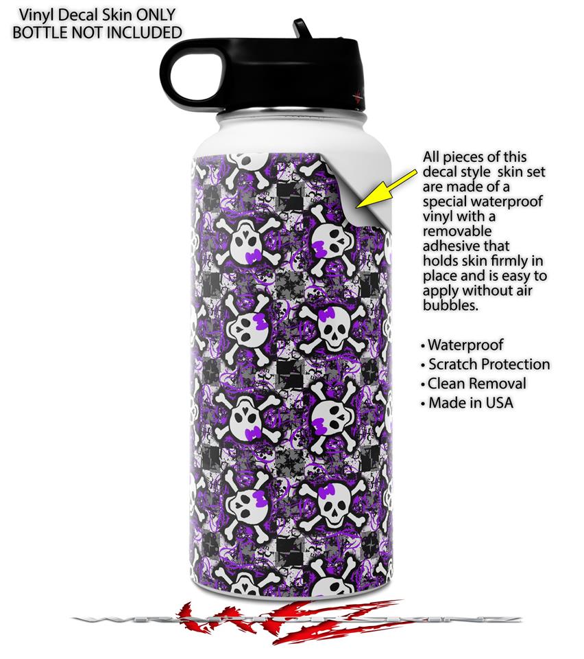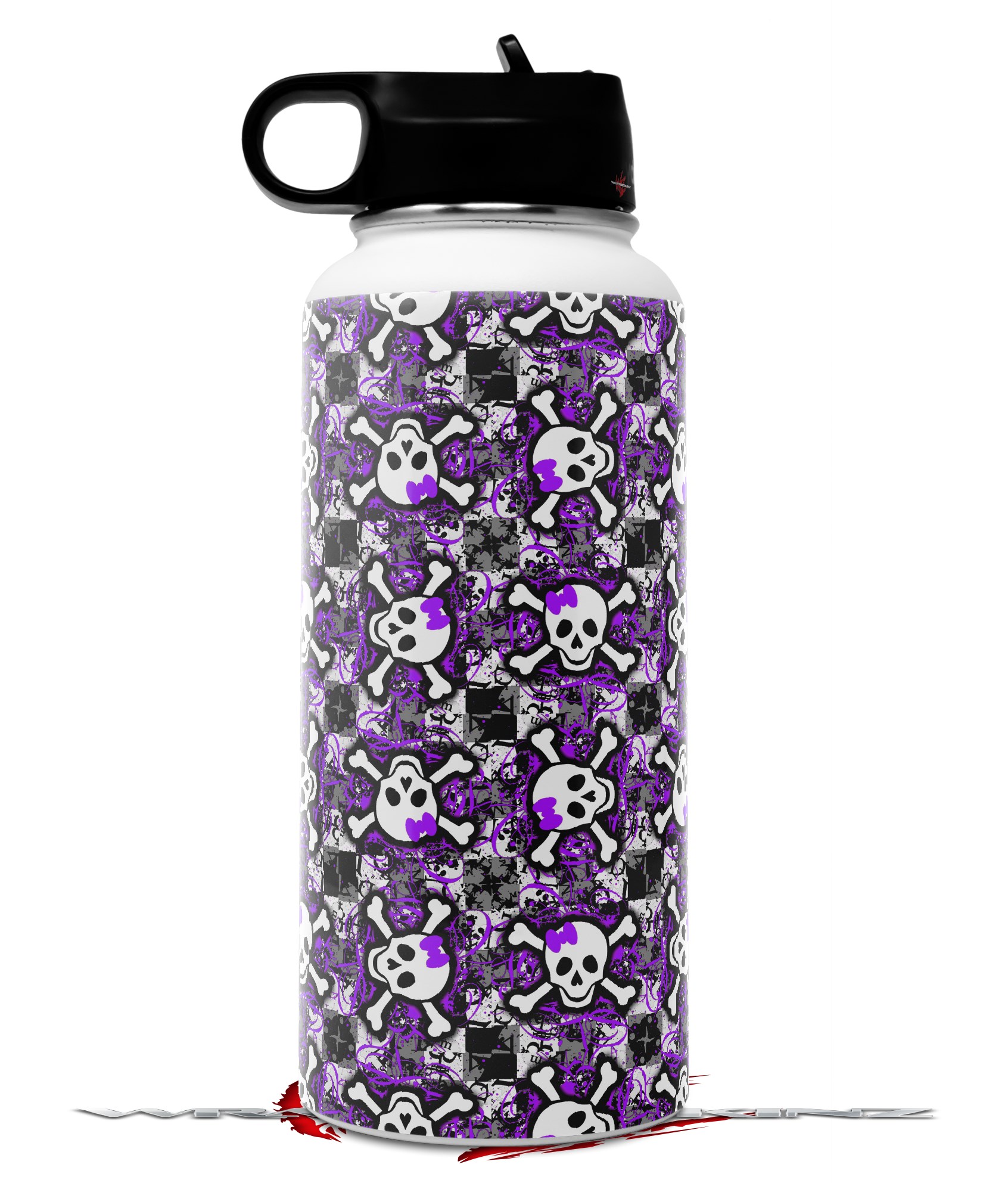 Skin Wrap Decal compatible with Hydro Flask Wide Mouth Bottle 32oz Splatter Girly Skull Purple (BOTTLE NOT INCLUDED)