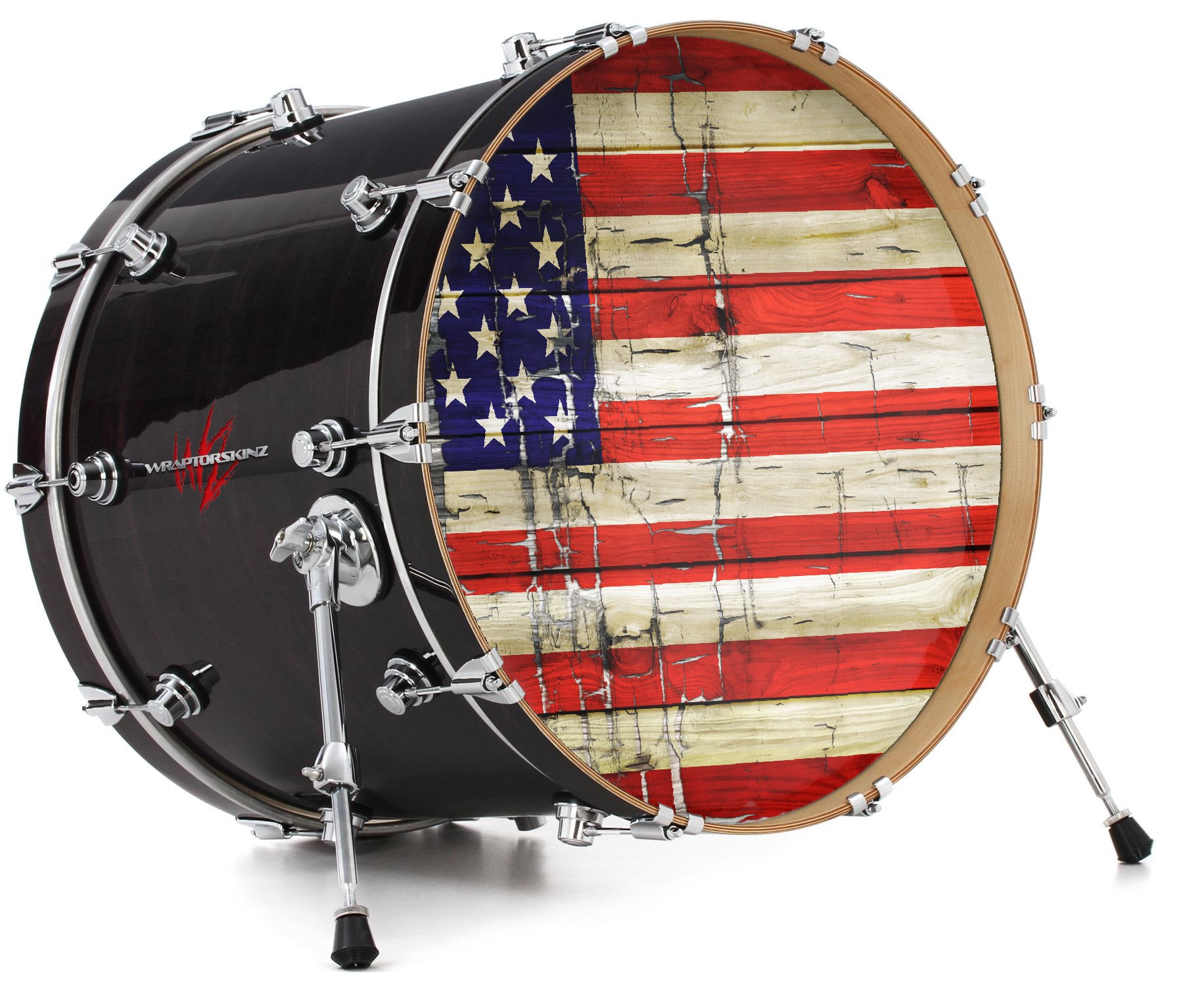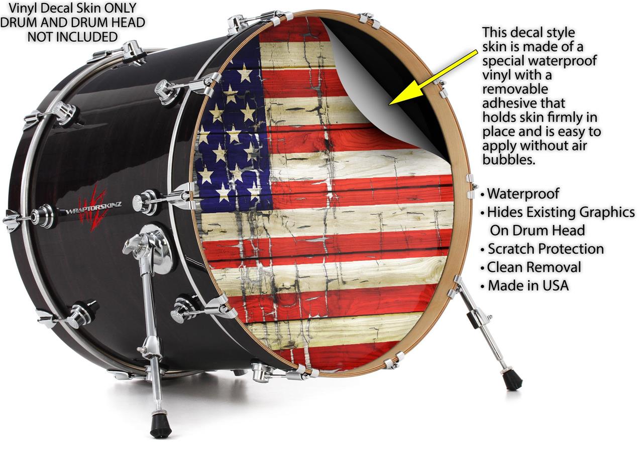 Vinyl Decal Skin Wrap for 22" Bass Kick Drum Head Painted Faded and Cracked USA American Flag - DRUM HEAD NOT INCLUDED