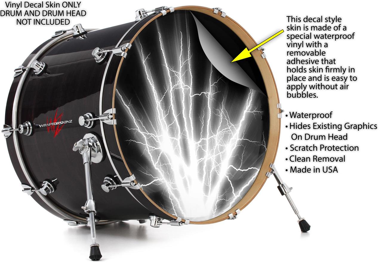 Vinyl Decal Skin Wrap for 22" Bass Kick Drum Head Lightning White - DRUM HEAD NOT INCLUDED