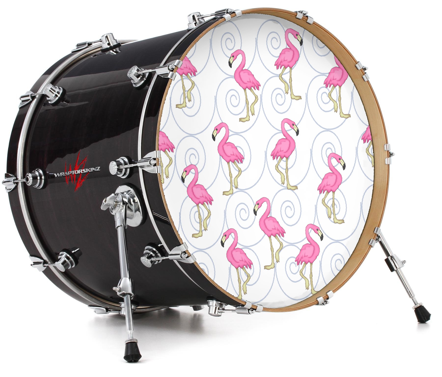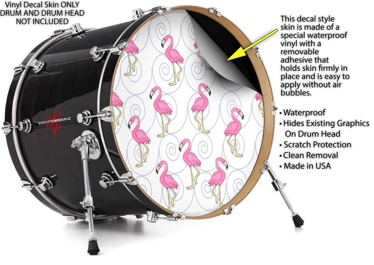 Vinyl Decal Skin Wrap for 22" Bass Kick Drum Head Flamingos on White - DRUM HEAD NOT INCLUDED