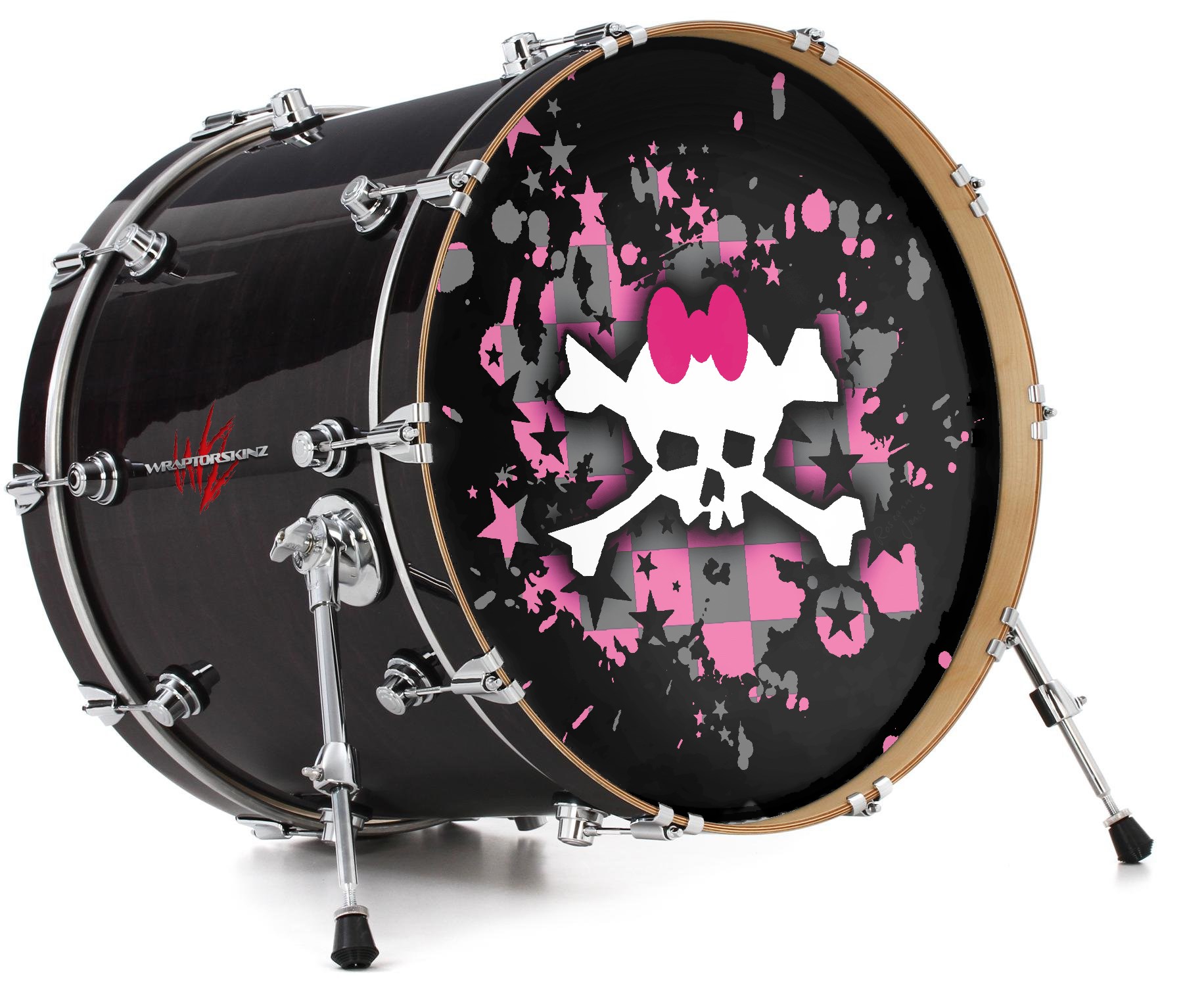 This design also available in other sizes. WraptorSkinz® skin wraps compatible with most kick drum heads. Printed using superb photo quality designs and vibrant colors printed with special fade resistant inks that last even in direct sun for years. WraptorSkinz are a composite three layer commercial grade materials vinyl. The bottom layer is a air release, grey block out removable adhesive that hides existing graphics on the drum head and is easily applied without air bubbles. The middle layer is a flexible vinyl printed with UV protected, fade resistant inks that deliver superb photo quality designs in vibrant colors. Finally, we bond a professional grade laminate over the entire skin adding a glossy protective finish.