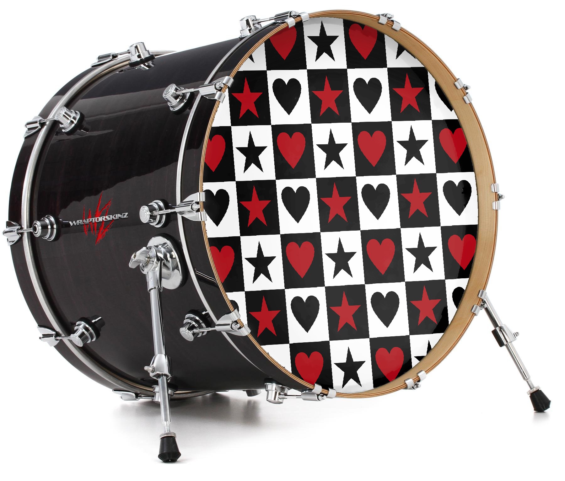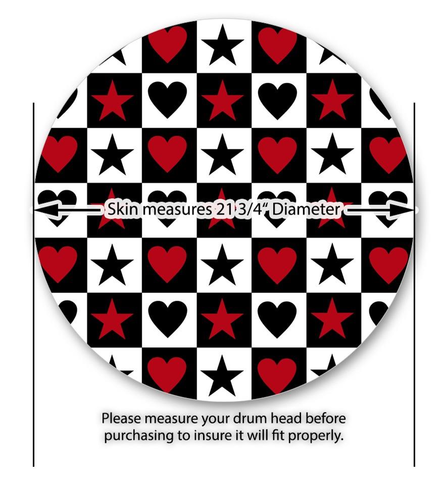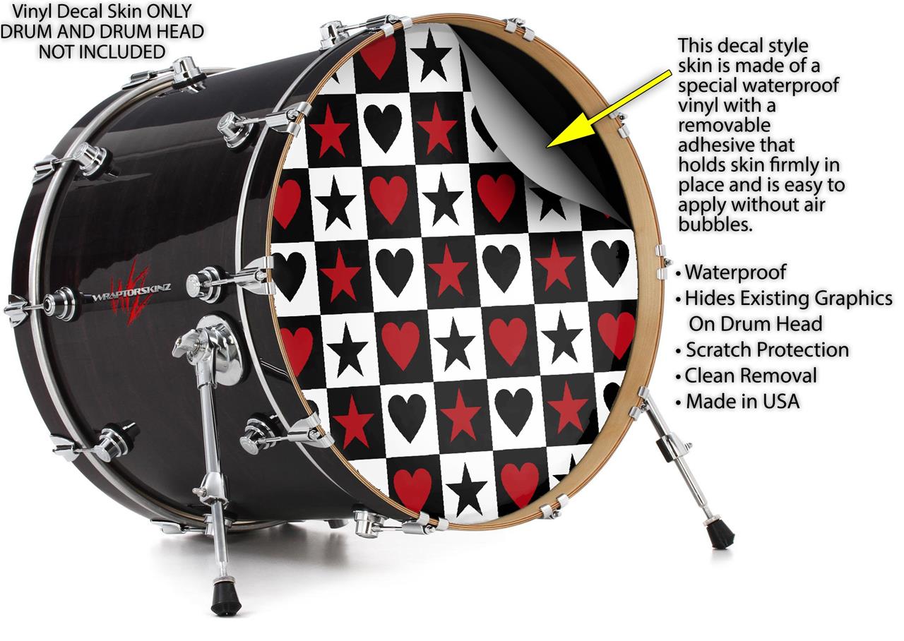 Vinyl Decal Skin Wrap for 22" Bass Kick Drum Head Hearts and Stars Red - DRUM HEAD NOT INCLUDED