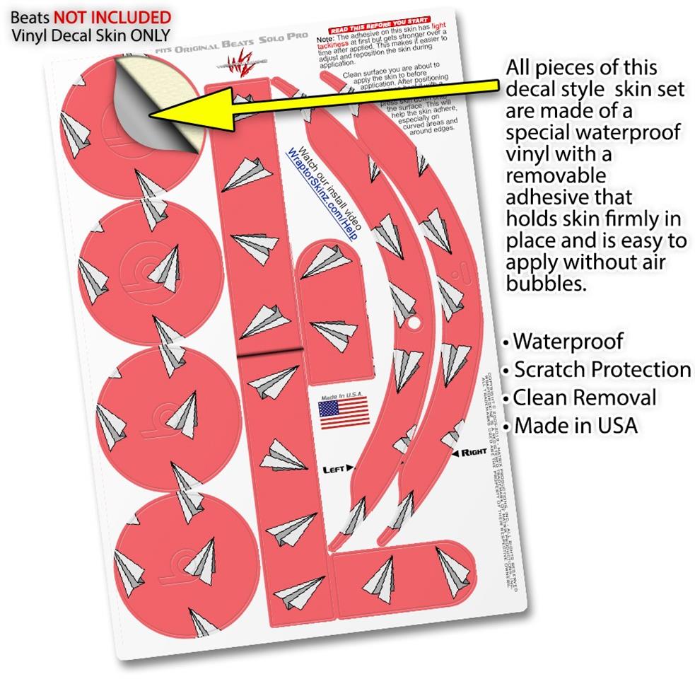 WraptorSkinz Skin Skin Decal Wrap works with Beats Solo Pro (Original) Headphones Paper Planes Coral Skin Only BEATS NOT INCLUDED