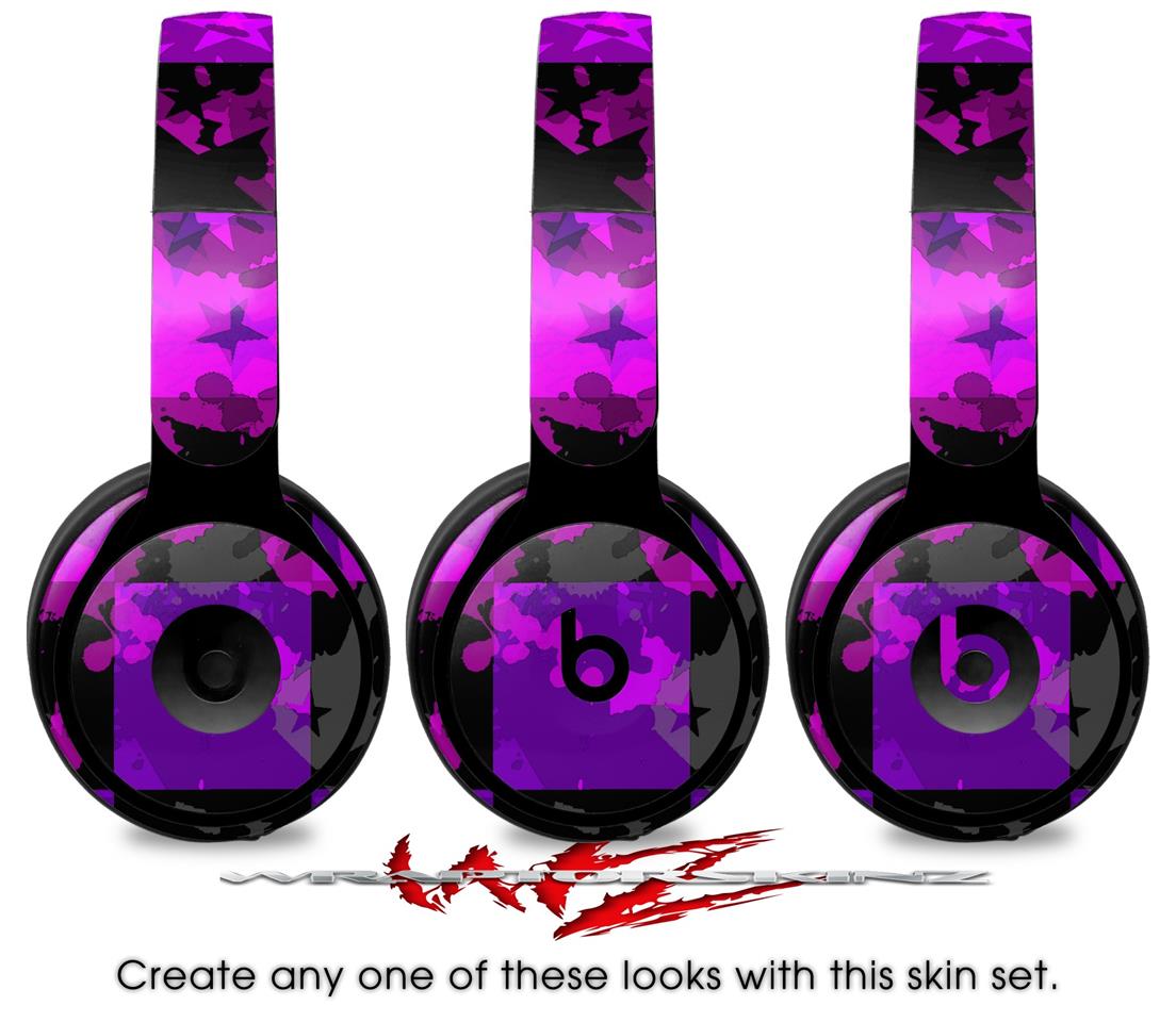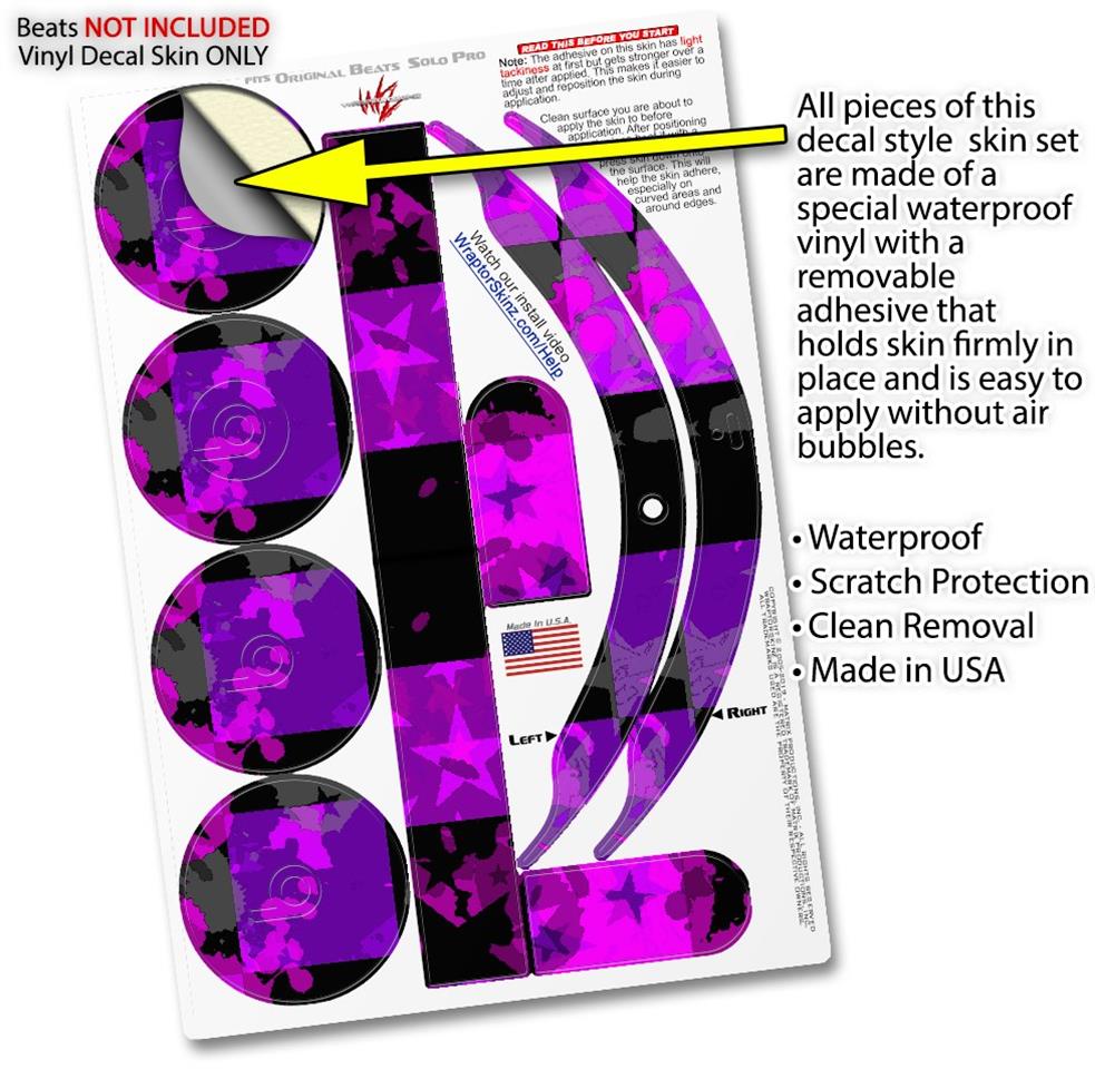 WraptorSkinz Skin Skin Decal Wrap works with Beats Solo Pro (Original) Headphones Purple Star Checkerboard Skin Only BEATS NOT INCLUDED