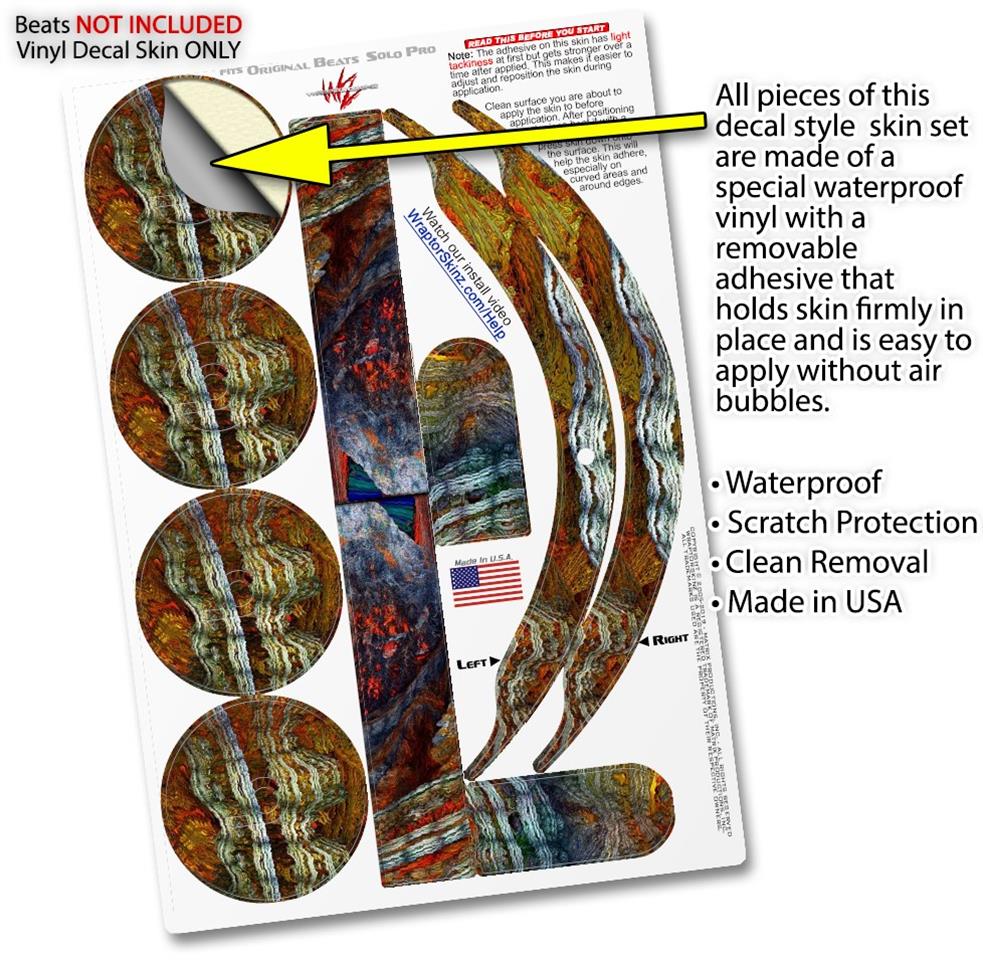This product is in no way affiliated with or endorsed by Apple or Beats brand products. WraptorSkinz® skin wraps work with the Original Beats Solo Pro version 1 headphones. Printed using superb photo quality designs and vibrant colors printed with special fade resistant inks that last even in direct sun for years. WraptorSkinz are a composite of two layers of commercial grade materials. The bottom layer is a soft, flexible vinyl with a special removable adhesive that is easily positioned, applied without air bubbles. Next, we print the bottom layer with UV protected, fade resistant inks that deliver superb photo quality designs in vibrant colors. Finally, we bond a professional grade laminate over the entire skin adding a glossy protective finish.