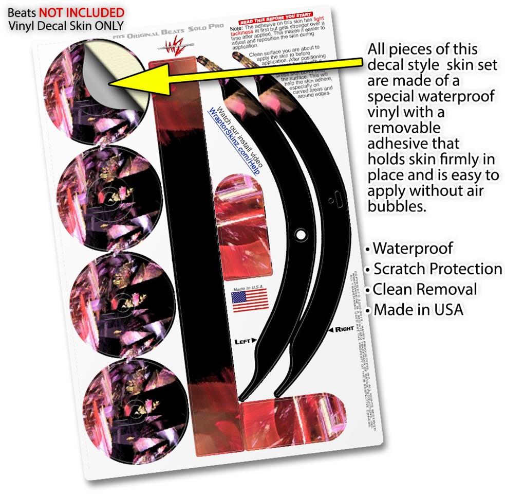 This product is in no way affiliated with or endorsed by Apple or Beats brand products. WraptorSkinz® skin wraps work with the Original Beats Solo Pro version 1 headphones. Printed using superb photo quality designs and vibrant colors printed with special fade resistant inks that last even in direct sun for years. WraptorSkinz are a composite of two layers of commercial grade materials. The bottom layer is a soft, flexible vinyl with a special removable adhesive that is easily positioned, applied without air bubbles. Next, we print the bottom layer with UV protected, fade resistant inks that deliver superb photo quality designs in vibrant colors. Finally, we bond a professional grade laminate over the entire skin adding a glossy protective finish.