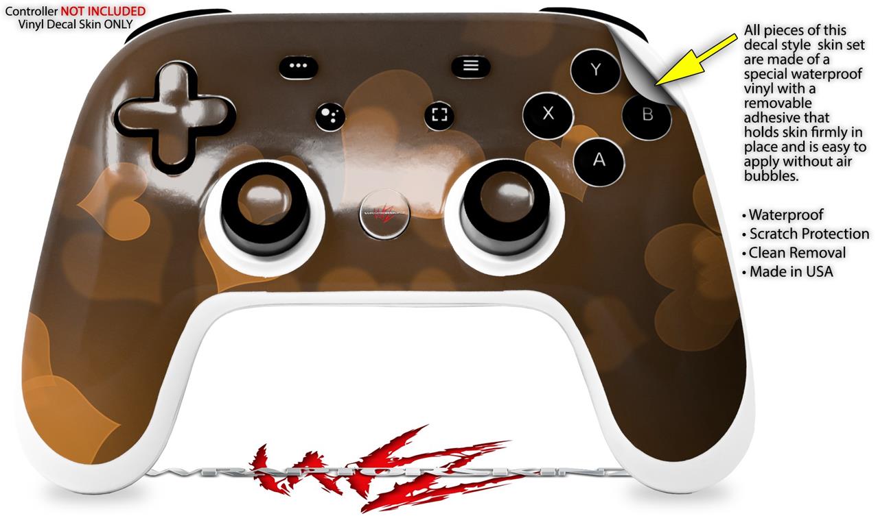 Skin Decal Wrap works with Original Google Stadia Controller Bokeh Hearts Orange Skin Only CONTROLLER NOT INCLUDED
