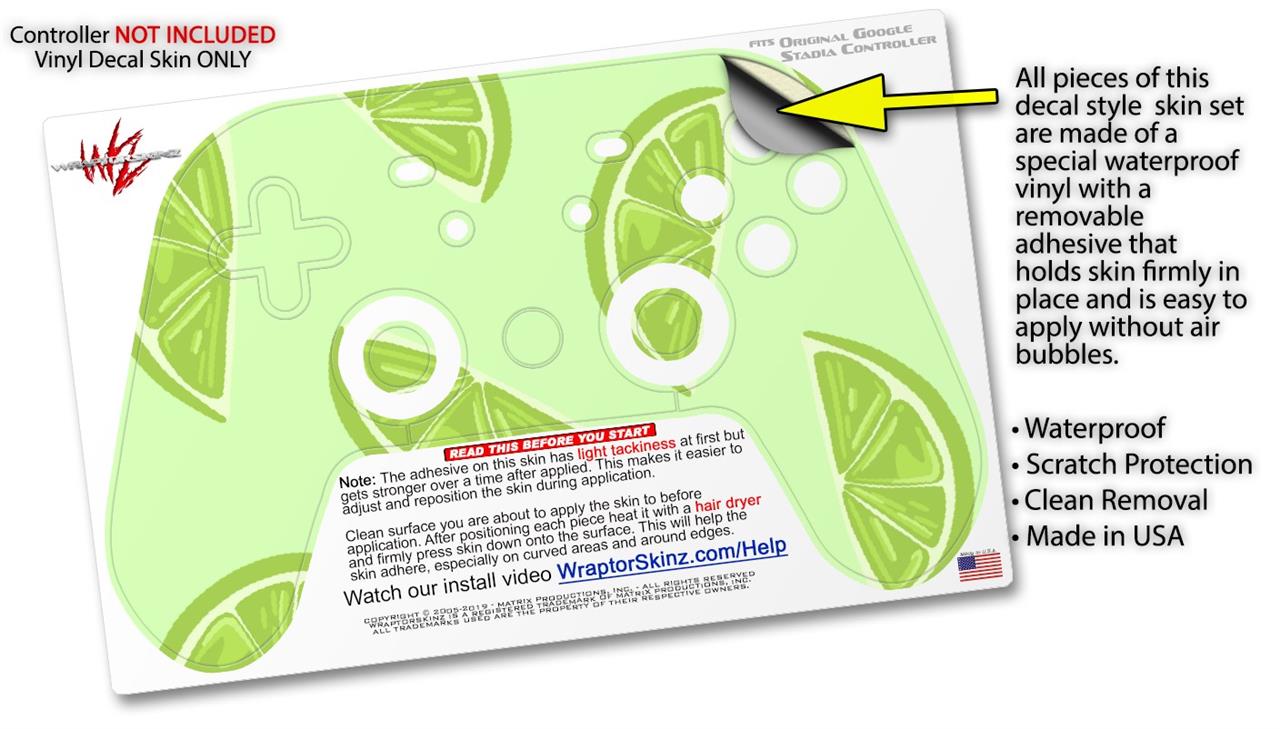 Skin Decal Wrap works with Original Google Stadia Controller Limes Green Skin Only CONTROLLER NOT INCLUDED
