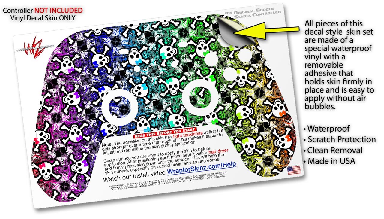 Skin Decal Wrap works with Original Google Stadia Controller Splatter Girly Skull Rainbow Skin Only CONTROLLER NOT INCLUDED