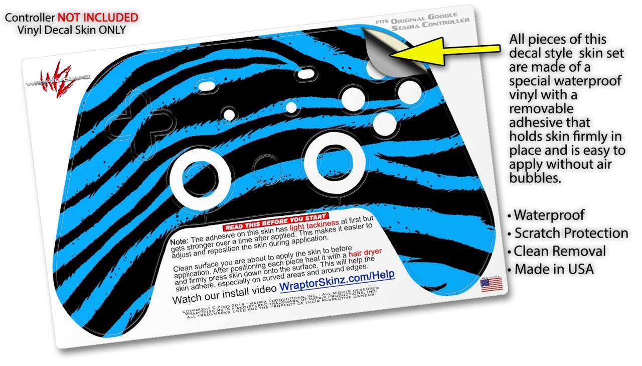 Skin Decal Wrap works with Original Google Stadia Controller Zebra Blue Skin Only CONTROLLER NOT INCLUDED