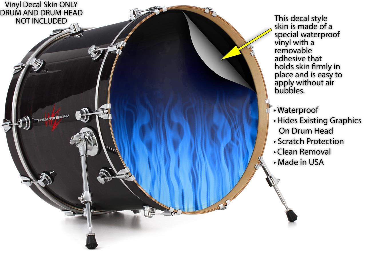 Vinyl Decal Skin Wrap for 20" Bass Kick Drum Head Fire Flames Blue - DRUM HEAD NOT INCLUDED