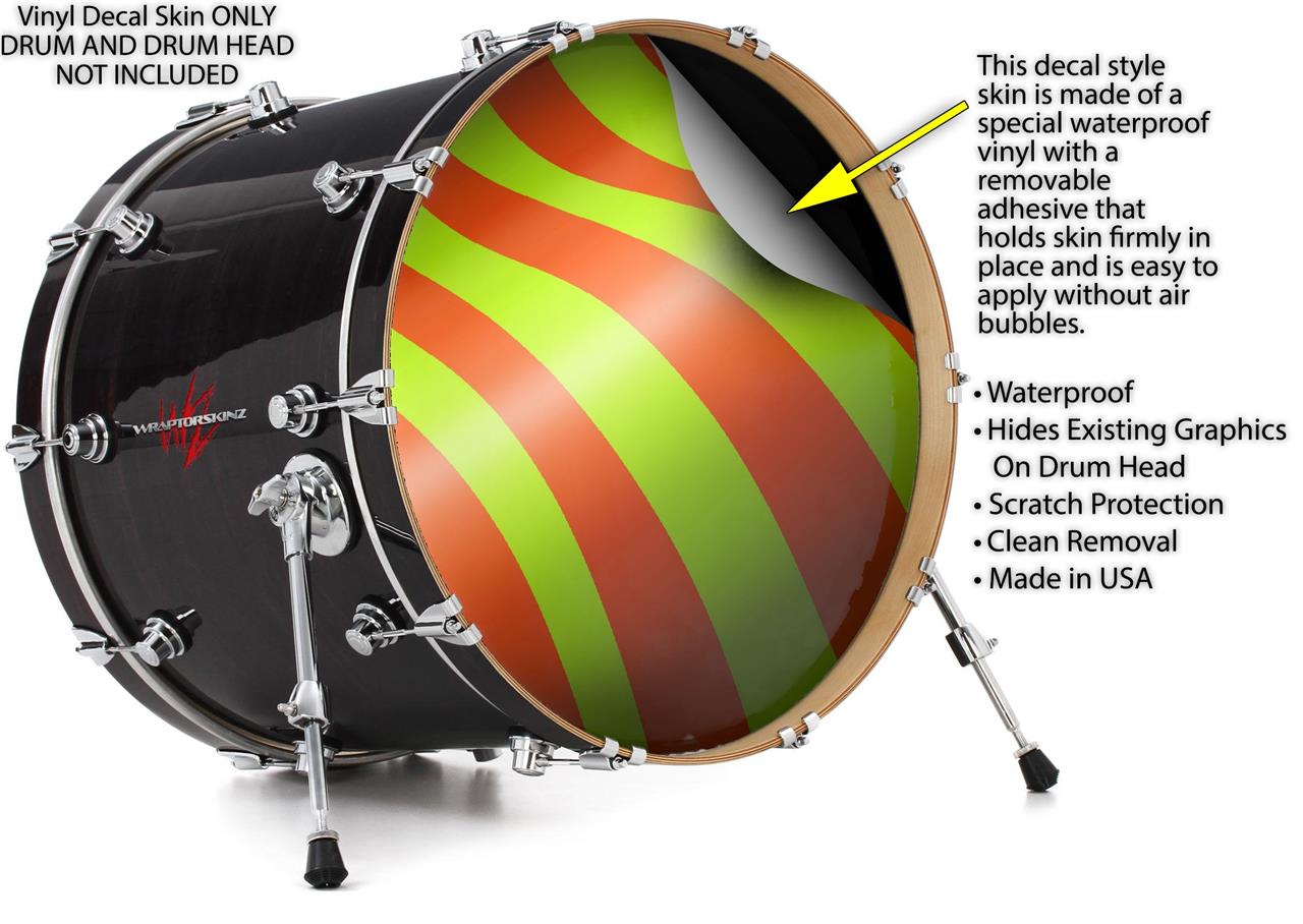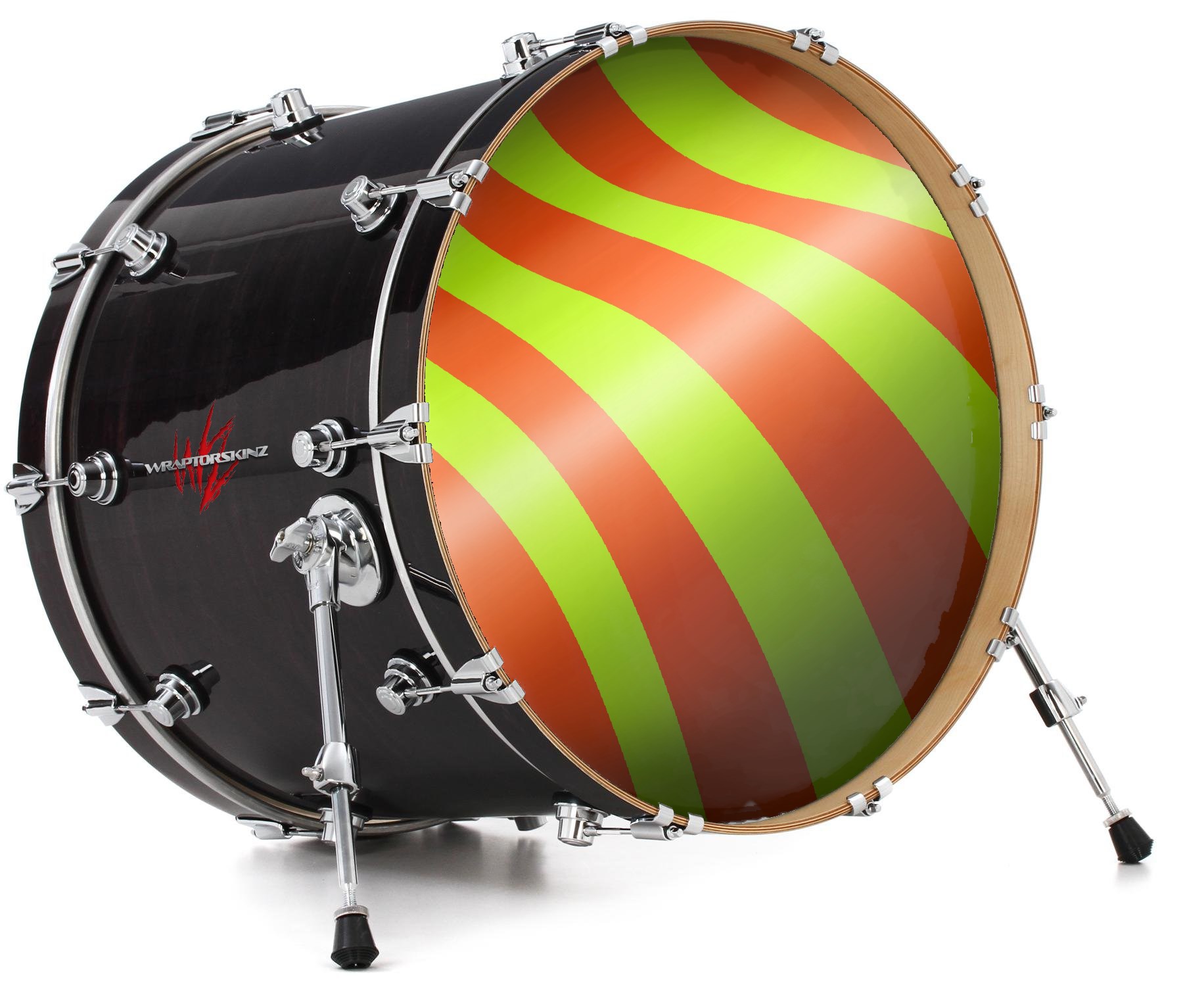 Vinyl Decal Skin Wrap for 20" Bass Kick Drum Head Two Tone Waves Neon Green Orange - DRUM HEAD NOT INCLUDED
