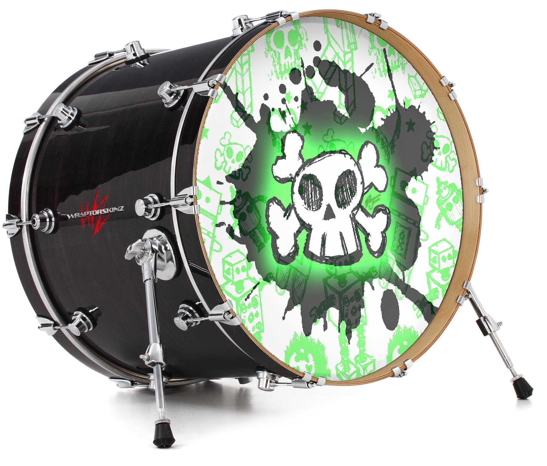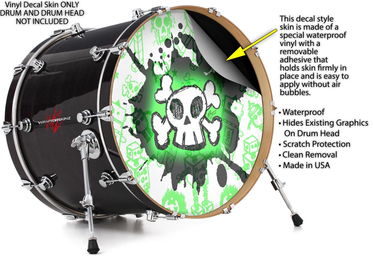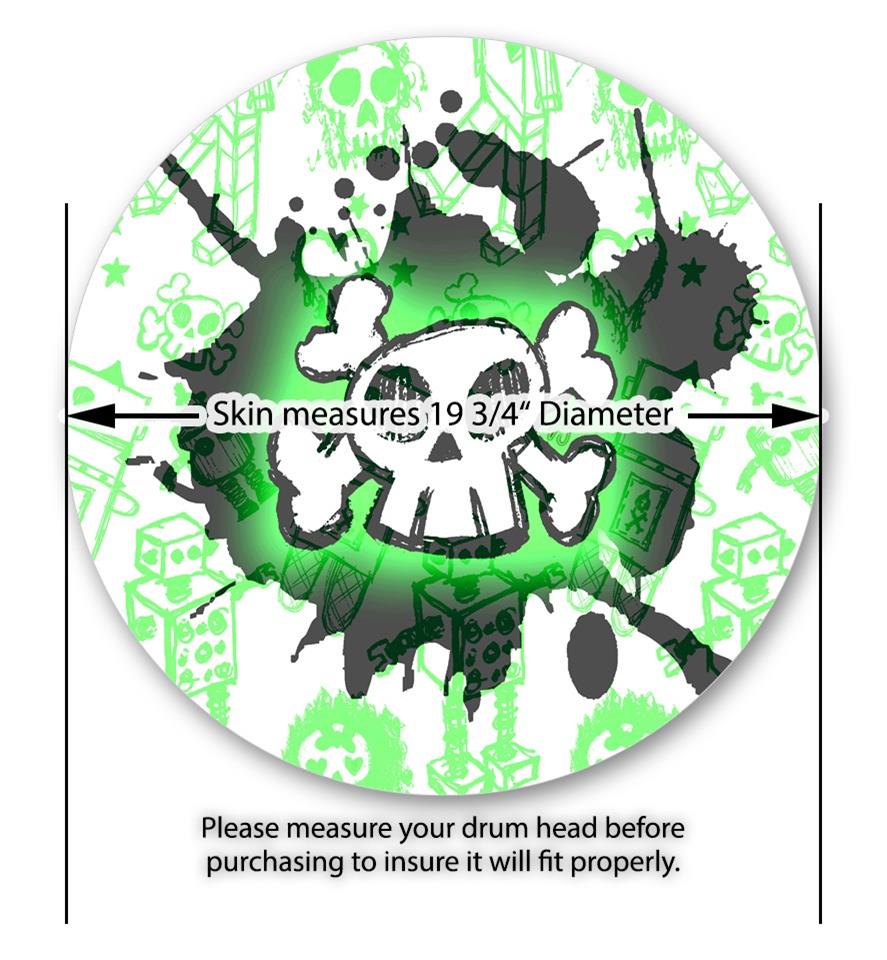Vinyl Decal Skin Wrap for 20" Bass Kick Drum Head Cartoon Skull Green - DRUM HEAD NOT INCLUDED