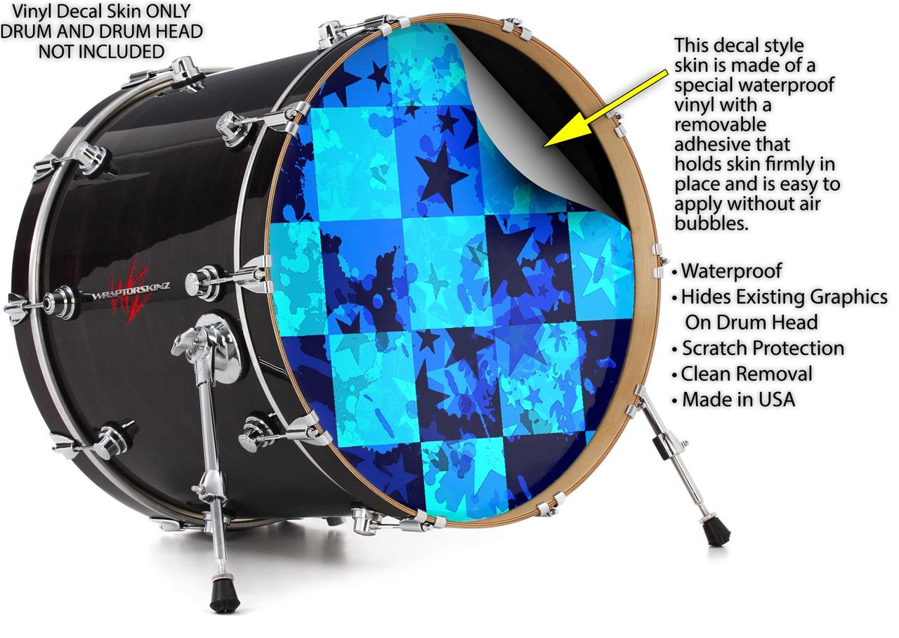 Vinyl Decal Skin Wrap for 20" Bass Kick Drum Head Blue Star Checkers - DRUM HEAD NOT INCLUDED