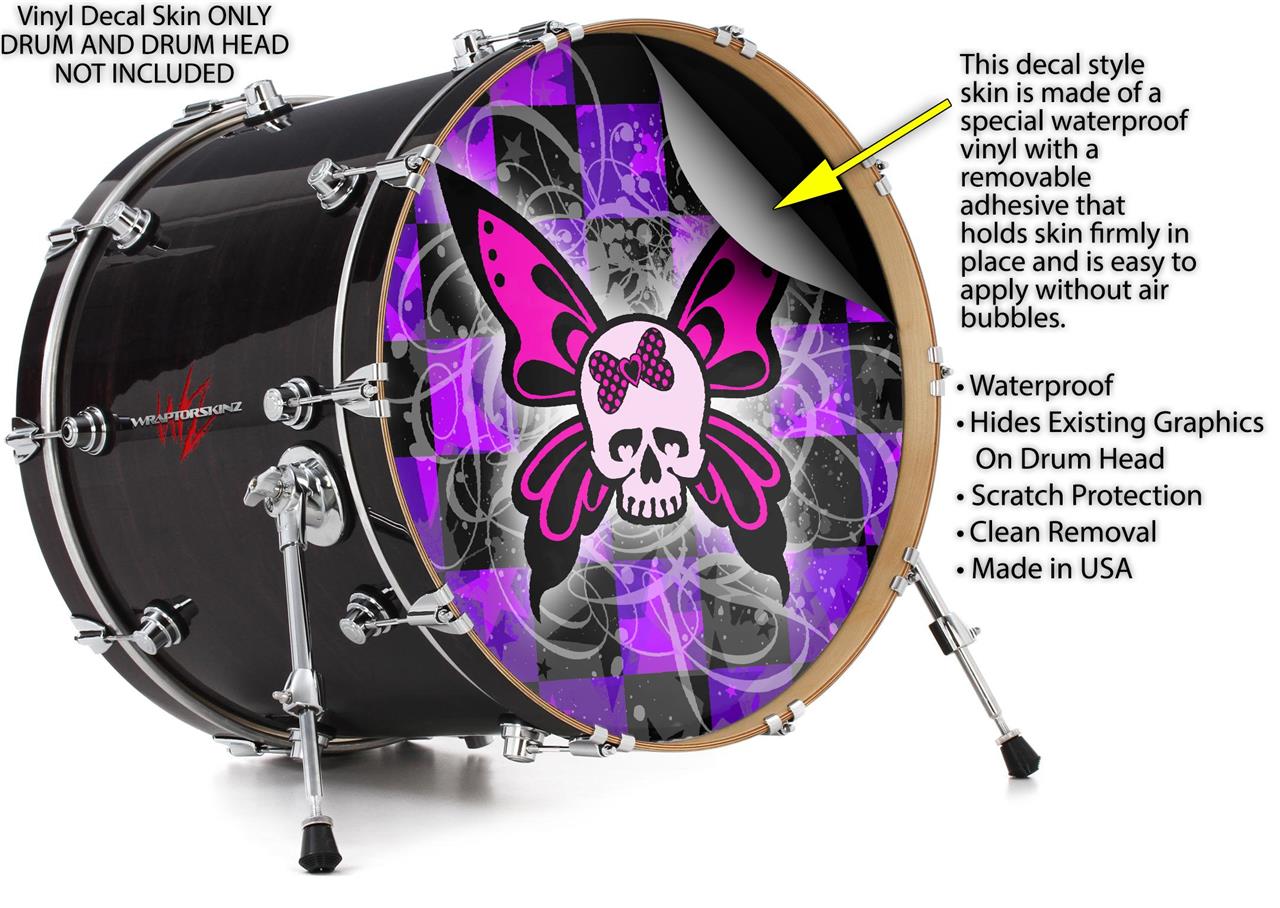 Vinyl Decal Skin Wrap for 20" Bass Kick Drum Head Butterfly Skull - DRUM HEAD NOT INCLUDED