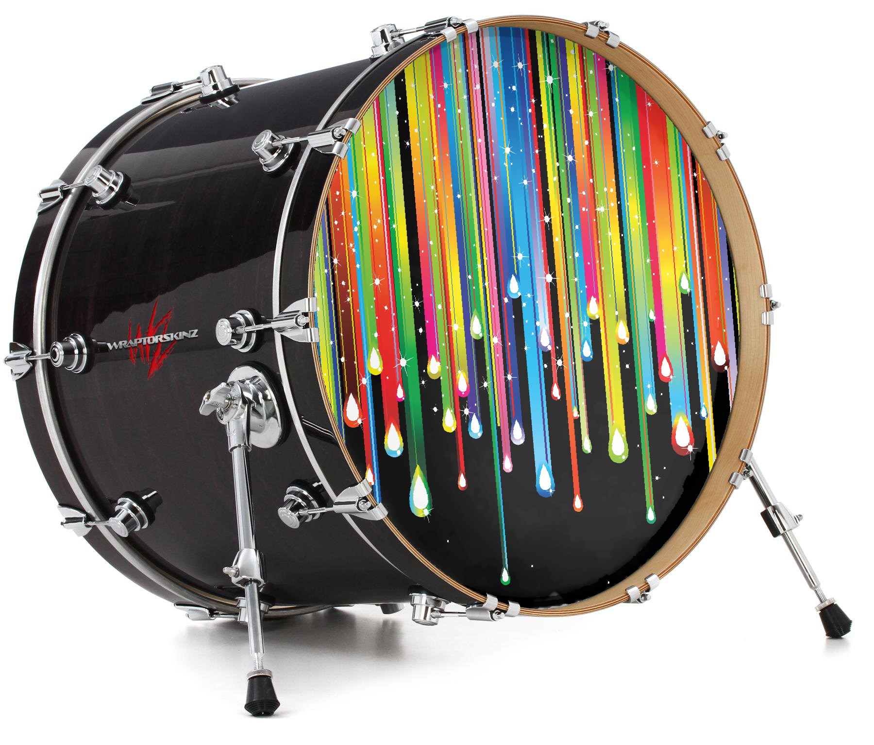 This design also available in other sizes. WraptorSkinz® skin wraps compatible with most kick drum heads. Printed using superb photo quality designs and vibrant colors printed with special fade resistant inks that last even in direct sun for years. WraptorSkinz are a composite three layer commercial grade materials vinyl. The bottom layer is a air release, grey block out removable adhesive that hides existing graphics on the drum head and is easily applied without air bubbles. The middle layer is a flexible vinyl printed with UV protected, fade resistant inks that deliver superb photo quality designs in vibrant colors. Finally, we bond a professional grade laminate over the entire skin adding a glossy protective finish.
