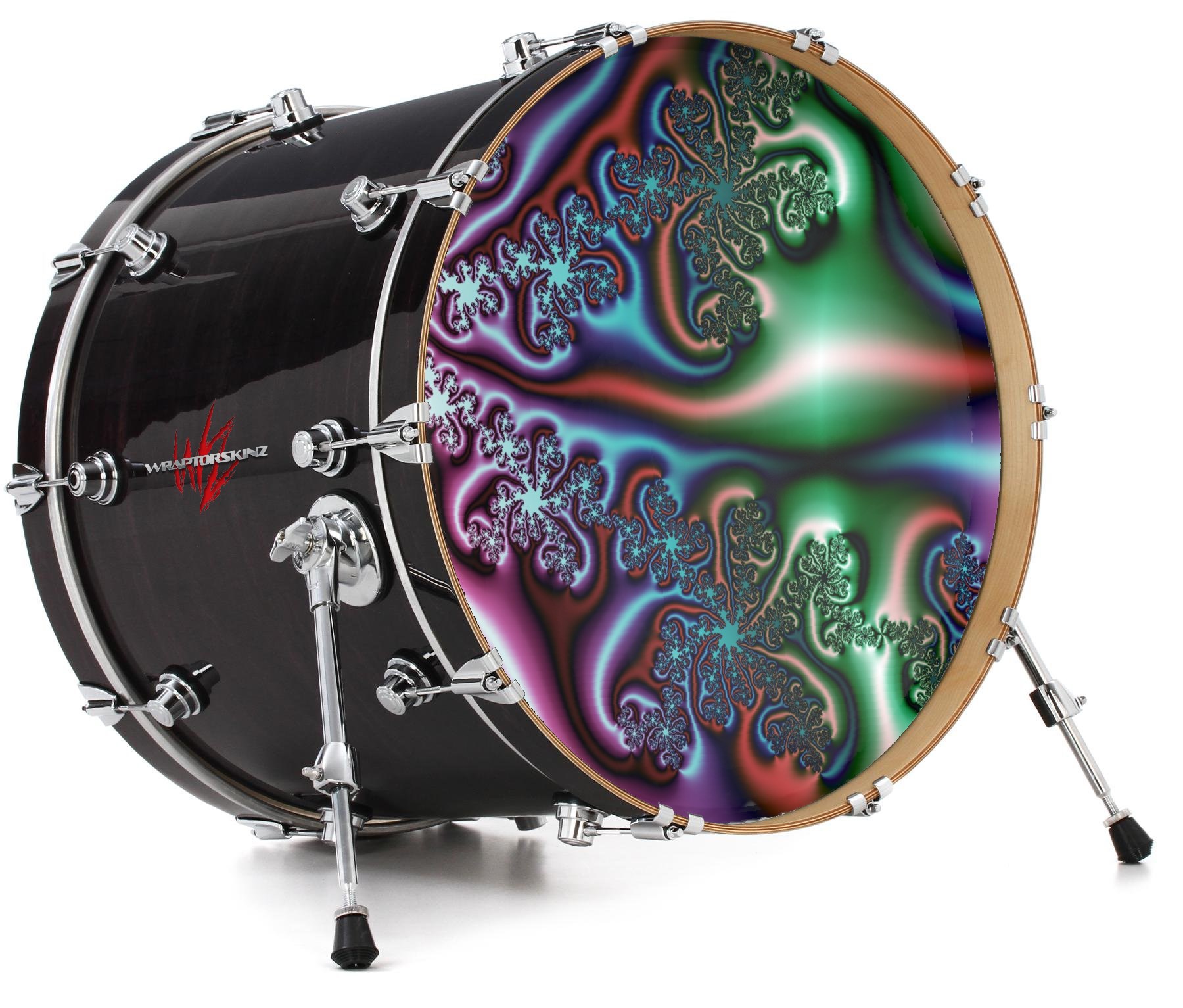 This design also available in other sizes. WraptorSkinz® skin wraps compatible with most kick drum heads. Printed using superb photo quality designs and vibrant colors printed with special fade resistant inks that last even in direct sun for years. WraptorSkinz are a composite three layer commercial grade materials vinyl. The bottom layer is a air release, grey block out removable adhesive that hides existing graphics on the drum head and is easily applied without air bubbles. The middle layer is a flexible vinyl printed with UV protected, fade resistant inks that deliver superb photo quality designs in vibrant colors. Finally, we bond a professional grade laminate over the entire skin adding a glossy protective finish.