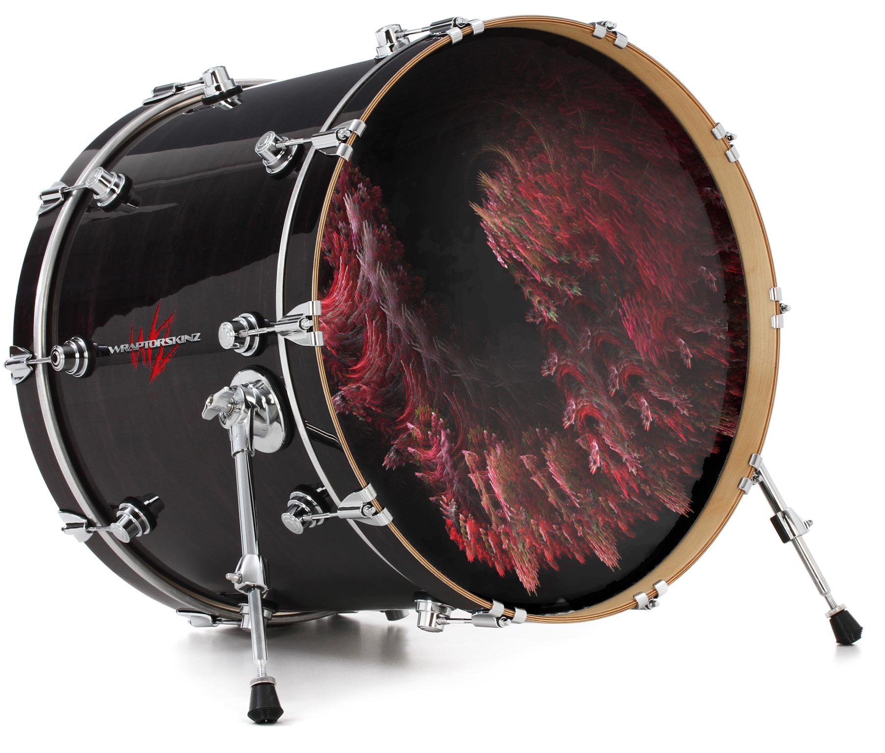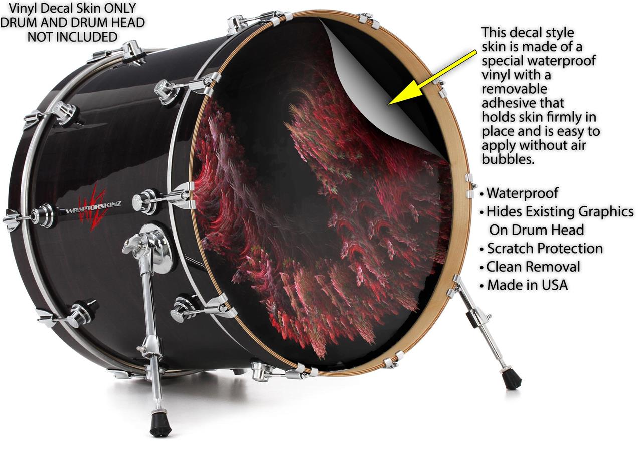 This design also available in other sizes. WraptorSkinz® skin wraps compatible with most kick drum heads. Printed using superb photo quality designs and vibrant colors printed with special fade resistant inks that last even in direct sun for years. WraptorSkinz are a composite three layer commercial grade materials vinyl. The bottom layer is a air release, grey block out removable adhesive that hides existing graphics on the drum head and is easily applied without air bubbles. The middle layer is a flexible vinyl printed with UV protected, fade resistant inks that deliver superb photo quality designs in vibrant colors. Finally, we bond a professional grade laminate over the entire skin adding a glossy protective finish.