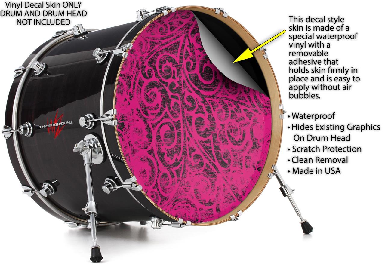 Decal Skin works with most 24" Bass Kick Drum Heads Folder Doodles Fuchsia - DRUM HEAD NOT INCLUDED