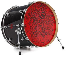 Decal Skin works with most 24" Bass Kick Drum Heads Folder Doodles Red - DRUM HEAD NOT INCLUDED