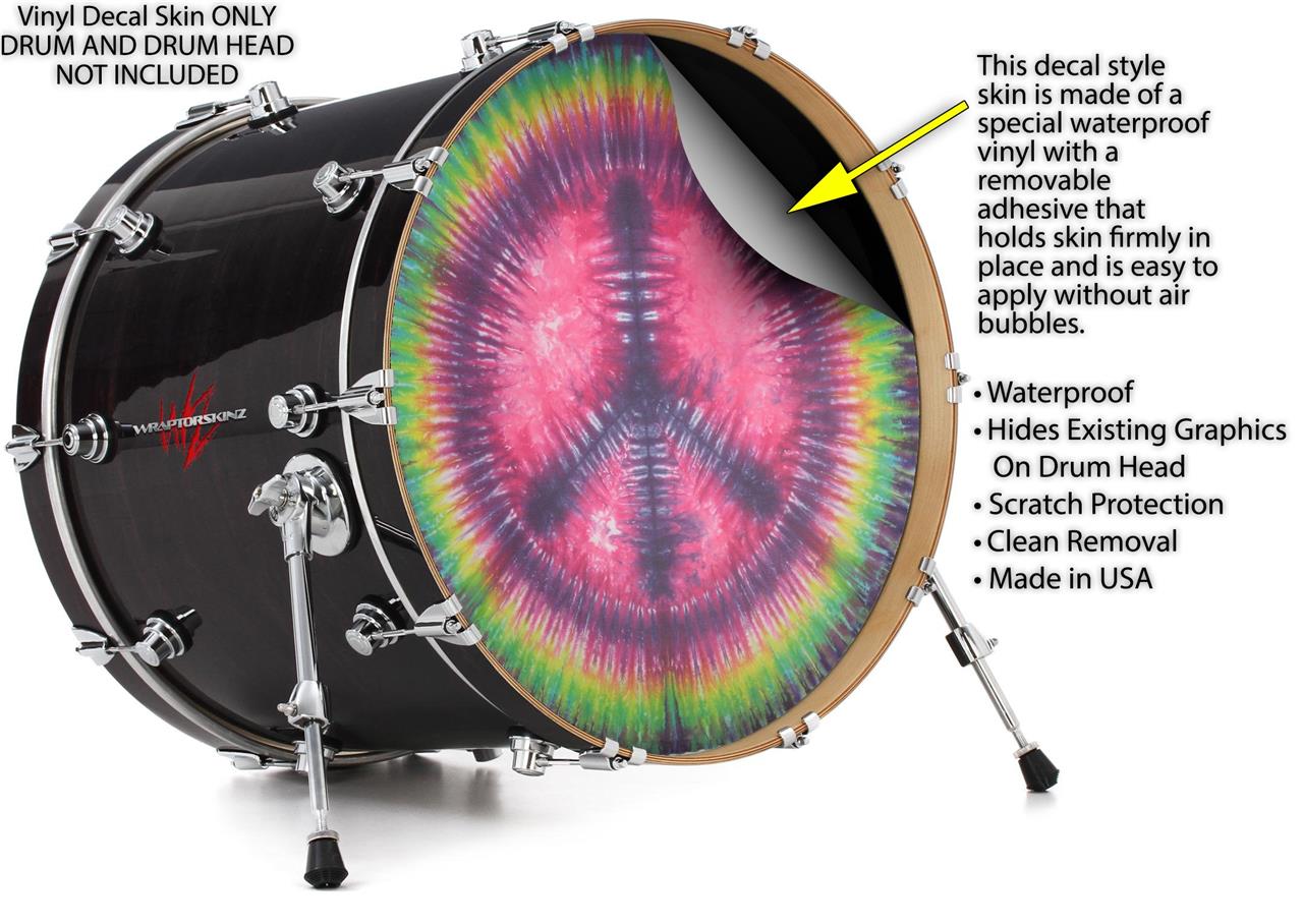 Decal Skin works with most 24" Bass Kick Drum Heads Tie Dye Peace Sign 103 - DRUM HEAD NOT INCLUDED