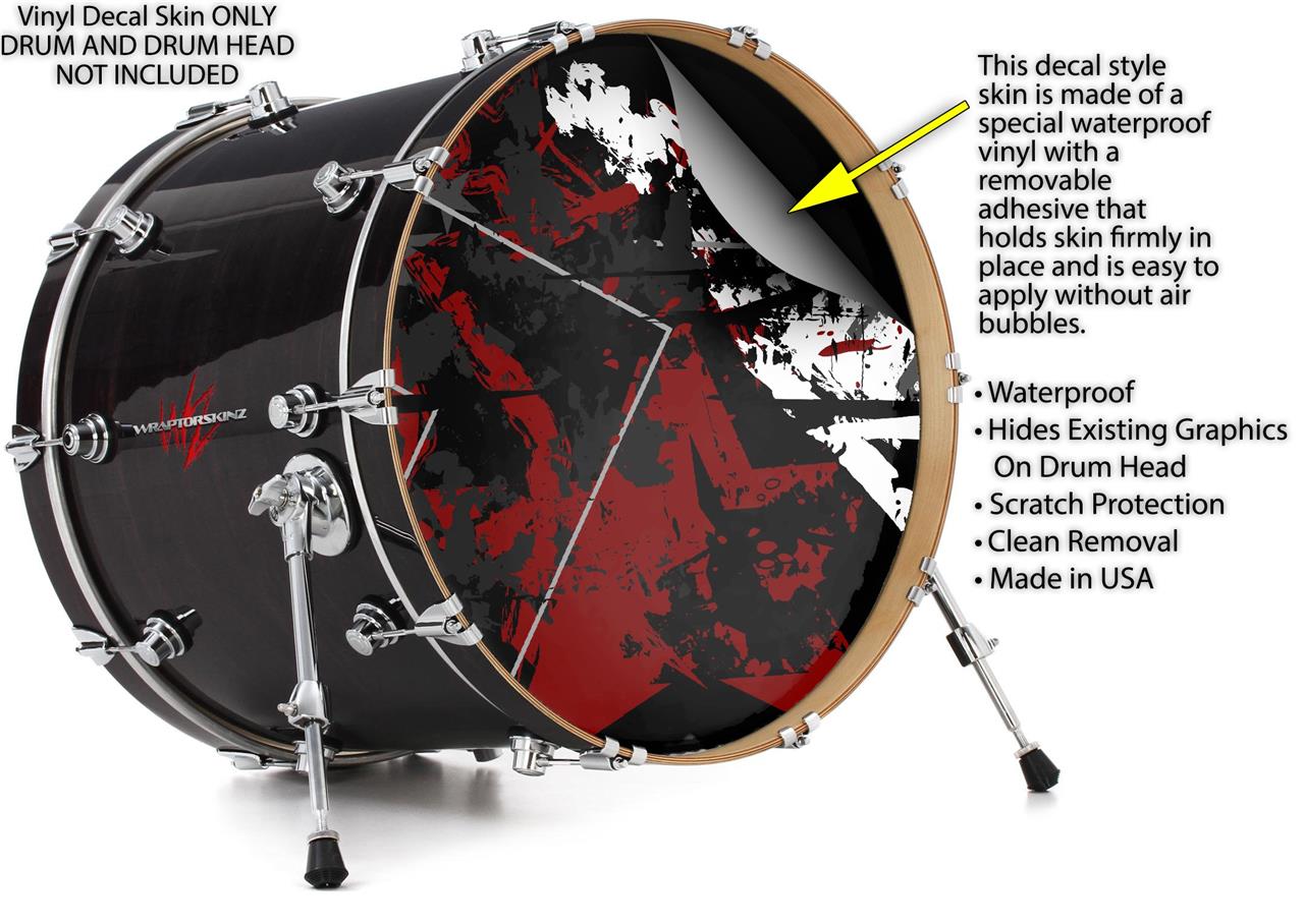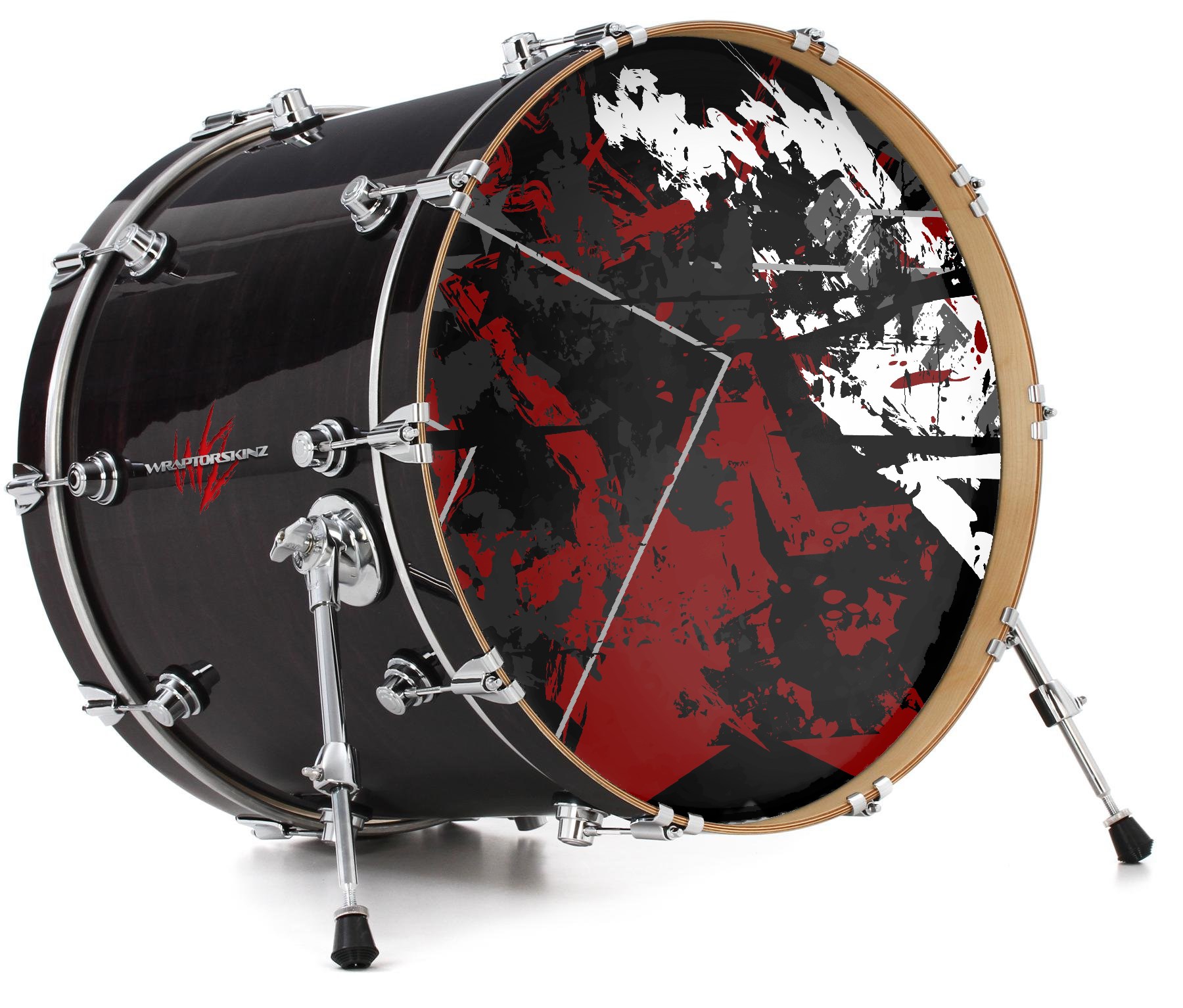 This design also available in other sizes. WraptorSkinz® skin wraps compatible with most kick drum heads. Printed using superb photo quality designs and vibrant colors printed with special fade resistant inks that last even in direct sun for years. WraptorSkinz are a composite three layer commercial grade materials vinyl. The bottom layer is a air release, grey block out removable adhesive that hides existing graphics on the drum head and is easily applied without air bubbles. The middle layer is a flexible vinyl printed with UV protected, fade resistant inks that deliver superb photo quality designs in vibrant colors. Finally, we bond a professional grade laminate over the entire skin adding a glossy protective finish.