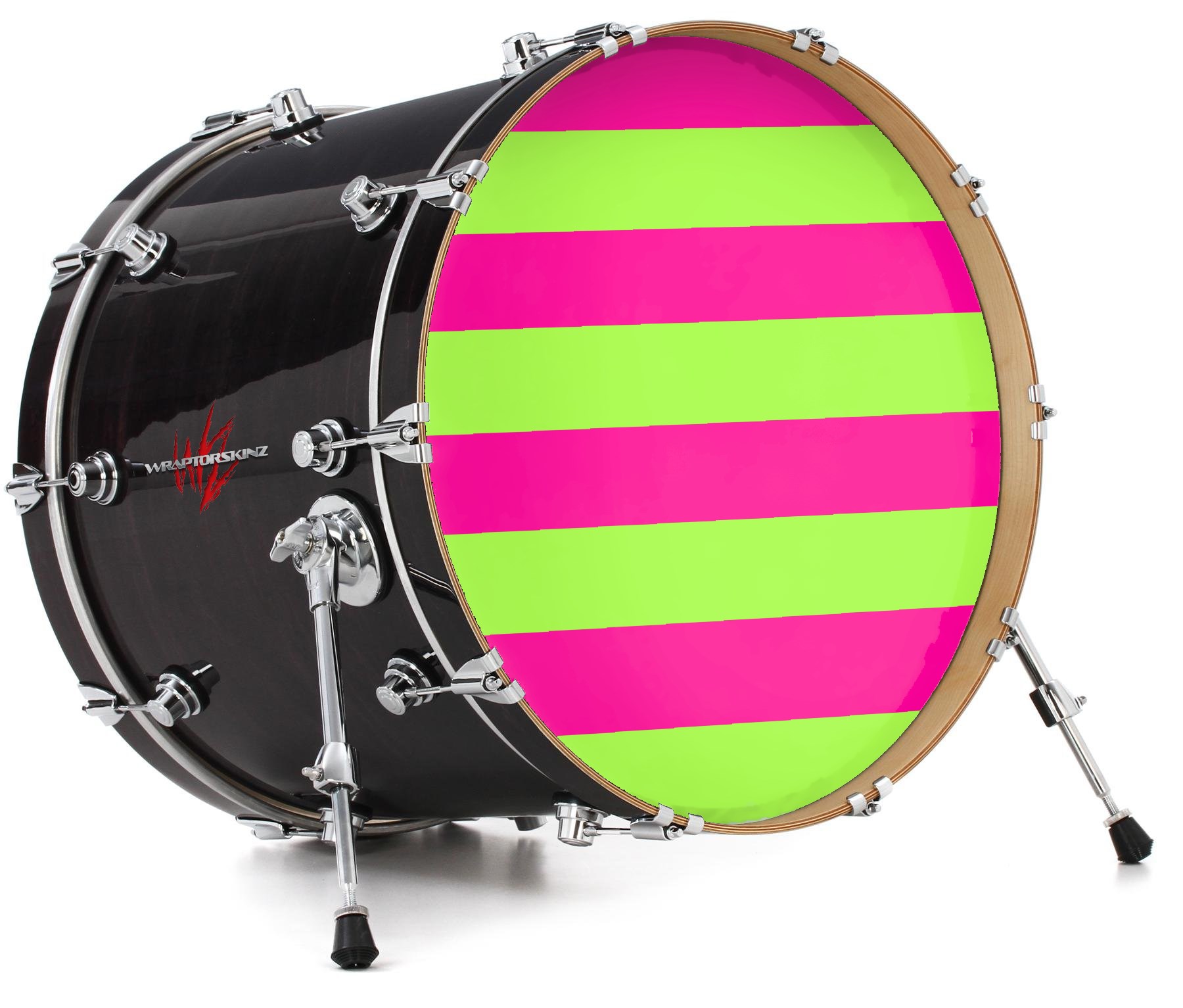 Decal Skin works with most 24" Bass Kick Drum Heads Psycho Stripes Neon Green and Hot Pink - DRUM HEAD NOT INCLUDED