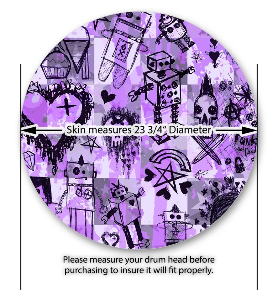 Decal Skin works with most 24" Bass Kick Drum Heads Scene Kid Sketches Purple - DRUM HEAD NOT INCLUDED