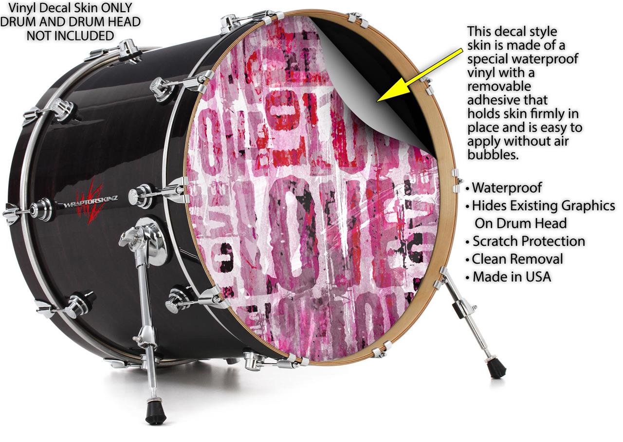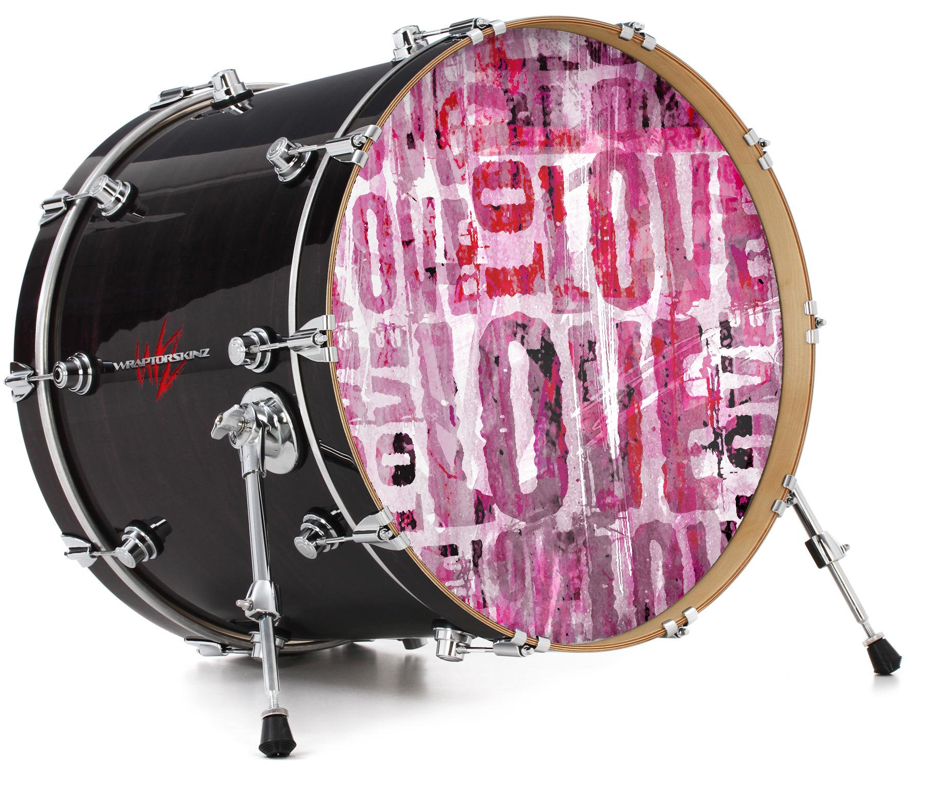 Decal Skin works with most 24" Bass Kick Drum Heads Grunge Love - DRUM HEAD NOT INCLUDED