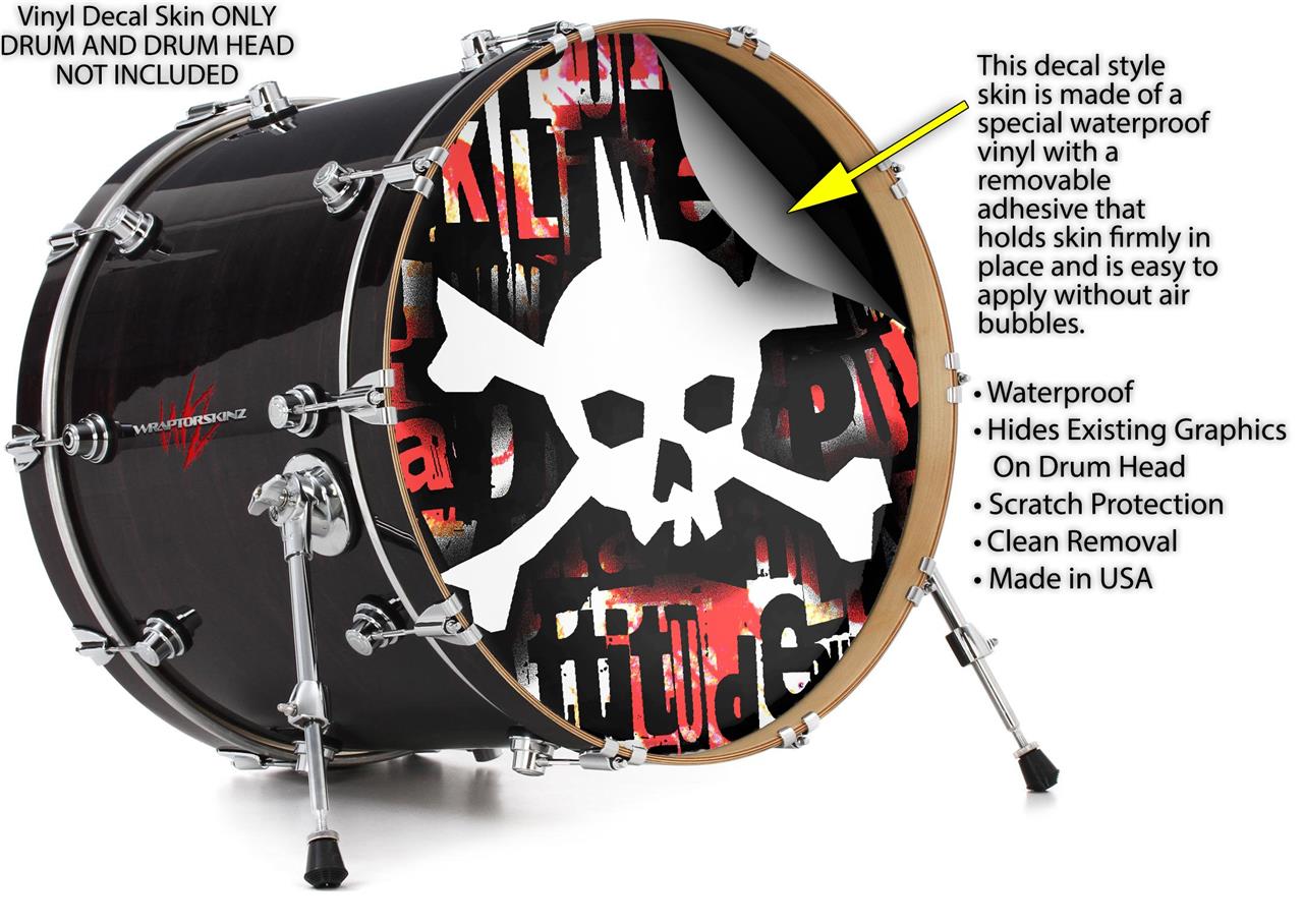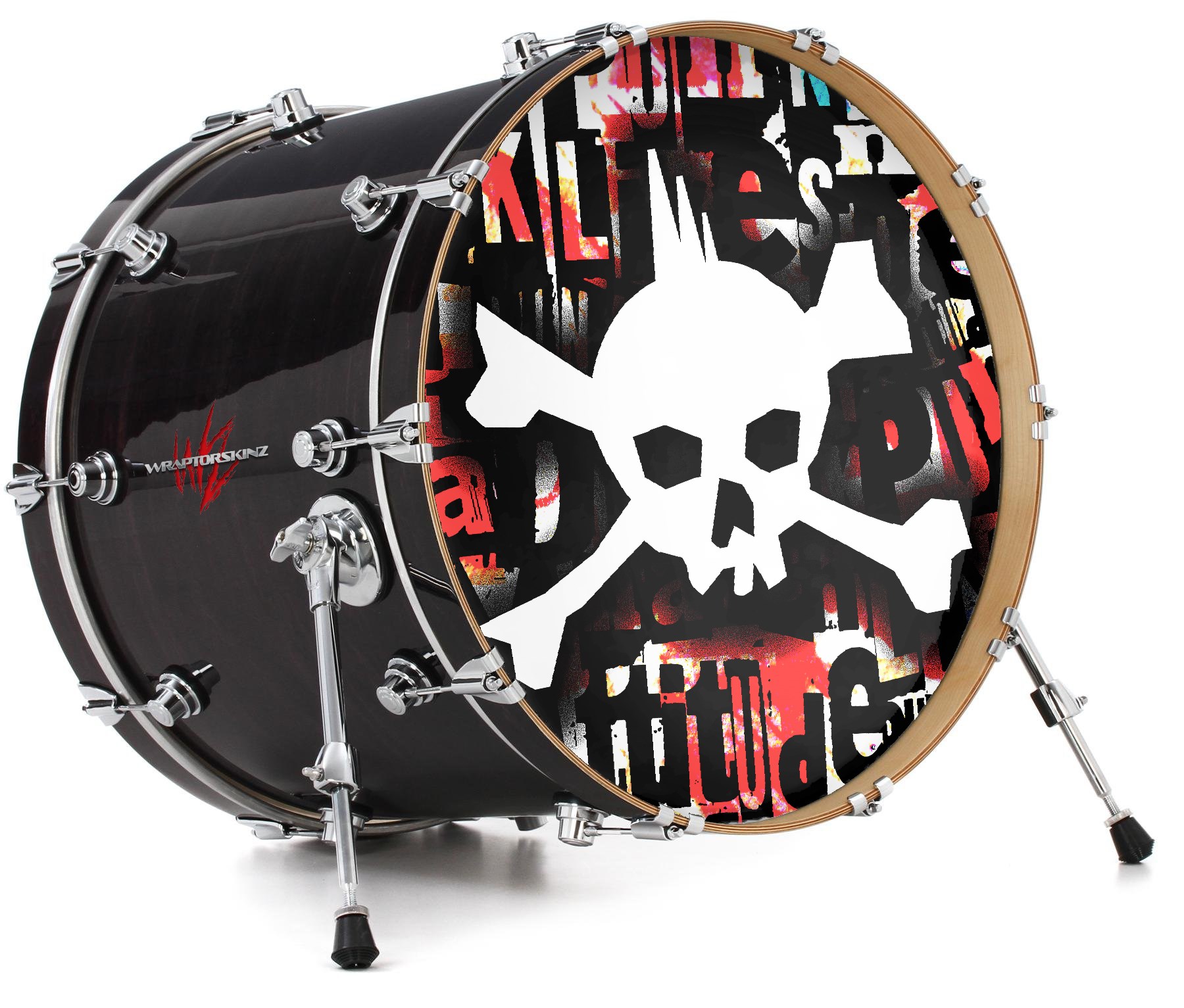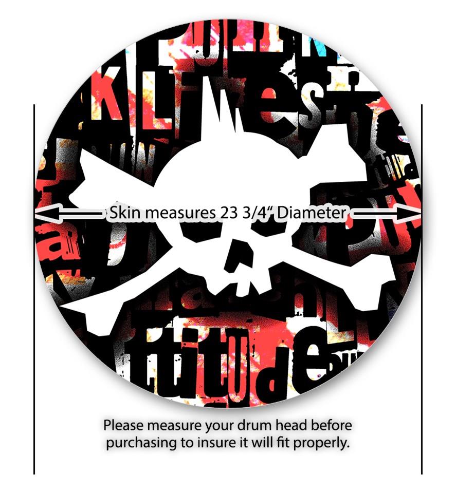 Decal Skin works with most 24" Bass Kick Drum Heads Punk Rock Skull - DRUM HEAD NOT INCLUDED