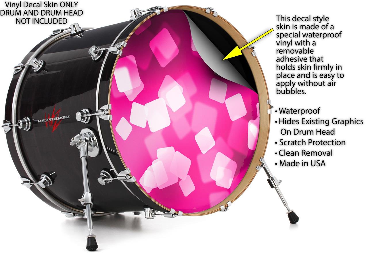 Decal Skin works with most 24" Bass Kick Drum Heads Bokeh Squared Hot Pink - DRUM HEAD NOT INCLUDED