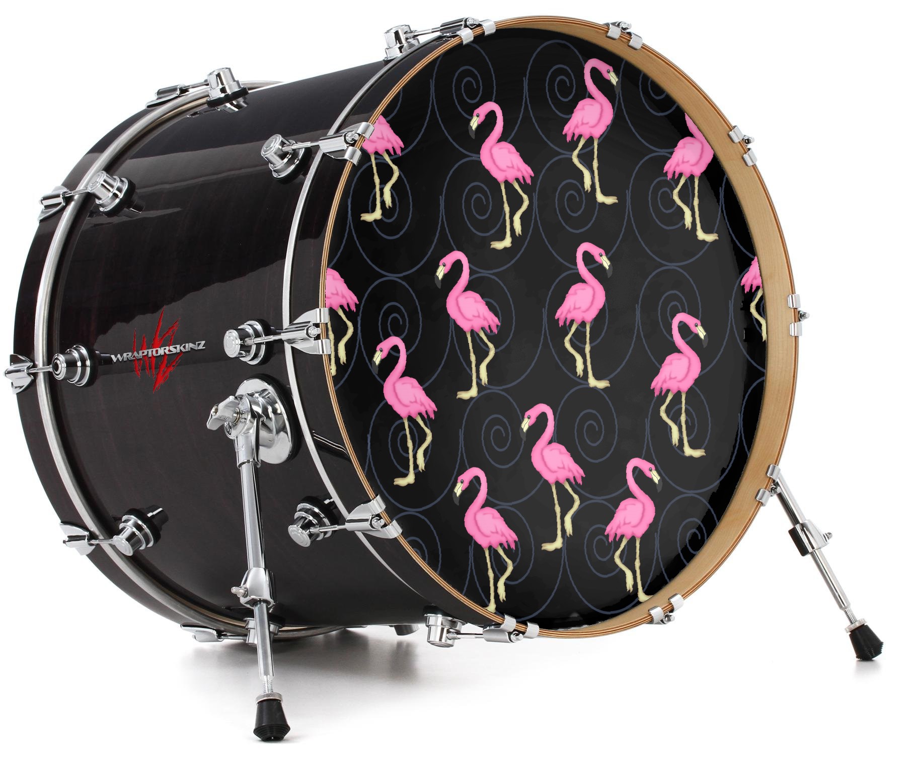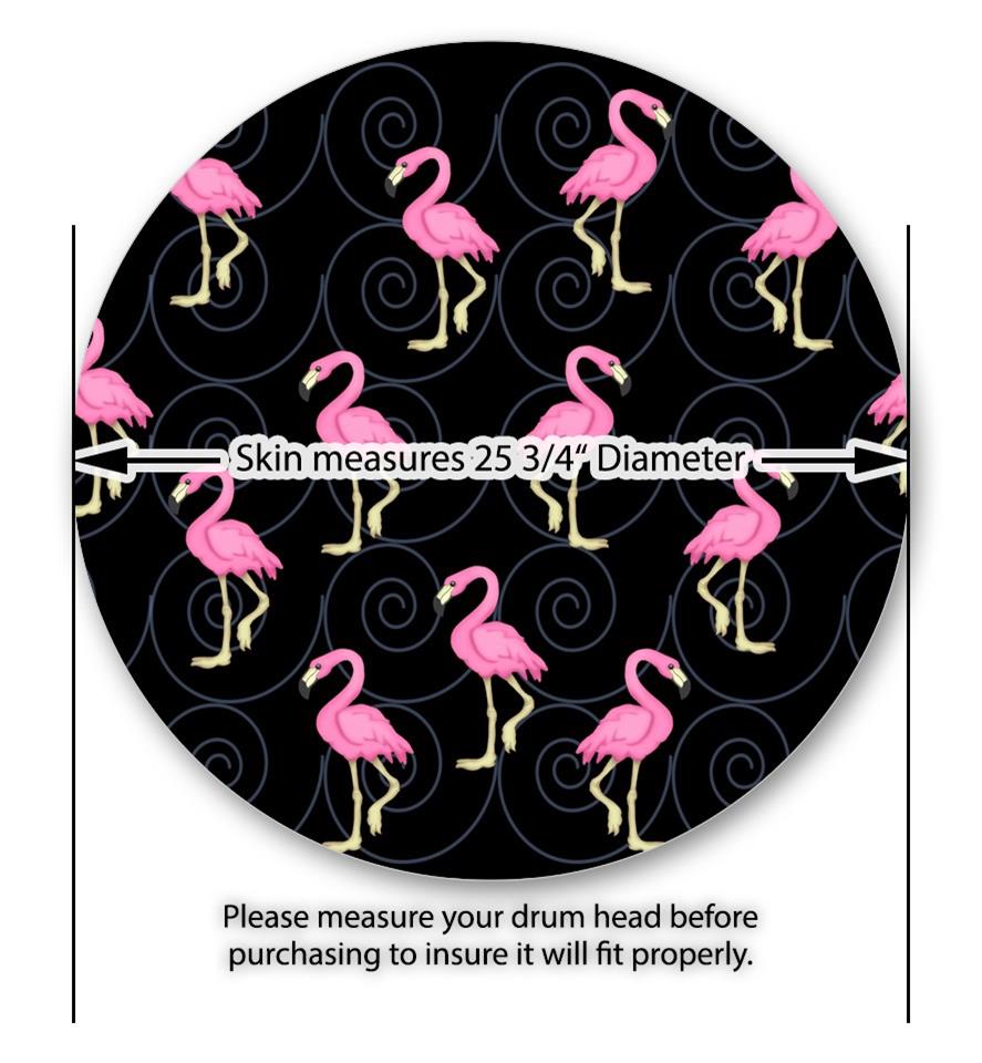 Decal Skin works with most 26" Bass Kick Drum Heads Flamingos on Black - DRUM HEAD NOT INCLUDED