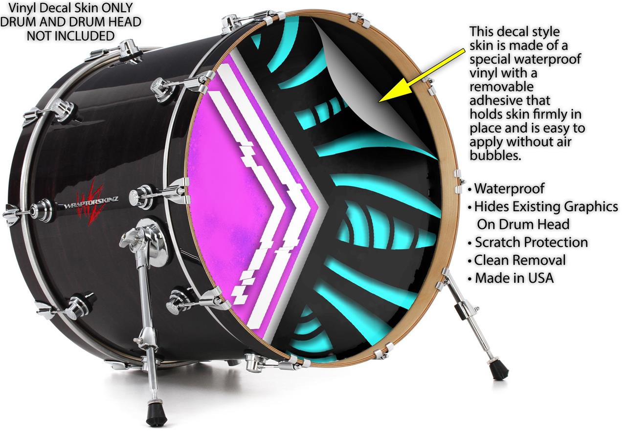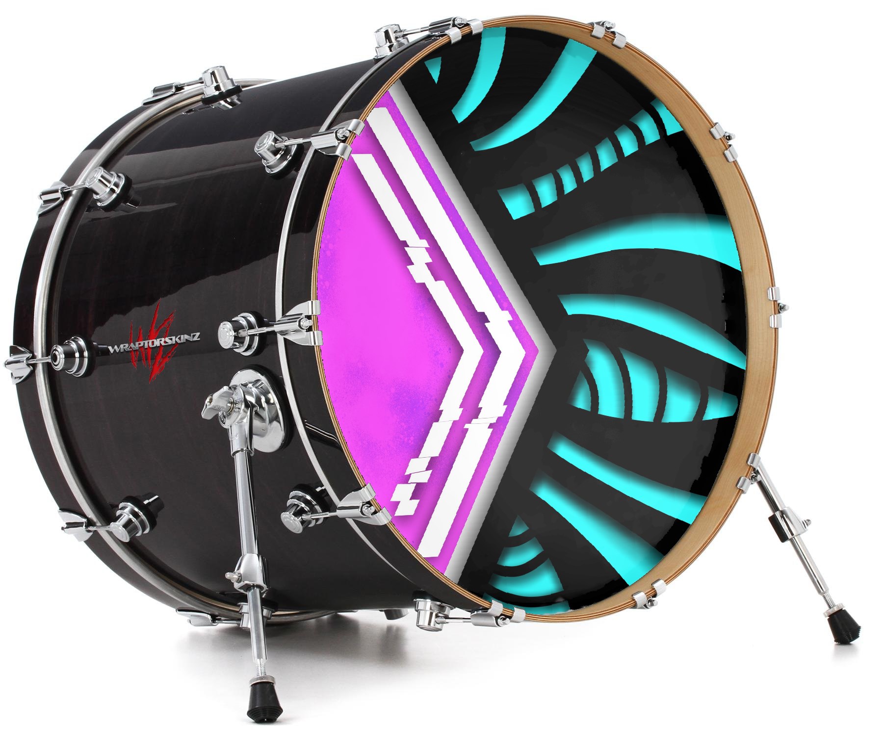 Decal Skin works with most 26" Bass Kick Drum Heads Black Waves Neon Teal Hot Pink - DRUM HEAD NOT INCLUDED