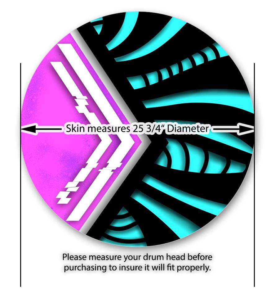 This design also available in other sizes. WraptorSkinz® skin wraps compatible with most kick drum heads. Printed using superb photo quality designs and vibrant colors printed with special fade resistant inks that last even in direct sun for years. WraptorSkinz are a composite three layer commercial grade materials vinyl. The bottom layer is a air release, grey block out removable adhesive that hides existing graphics on the drum head and is easily applied without air bubbles. The middle layer is a flexible vinyl printed with UV protected, fade resistant inks that deliver superb photo quality designs in vibrant colors. Finally, we bond a professional grade laminate over the entire skin adding a glossy protective finish.