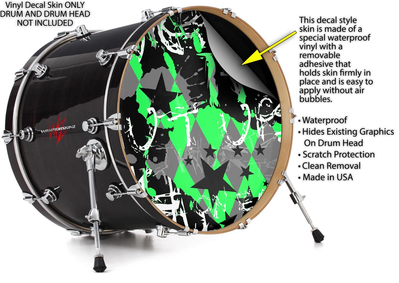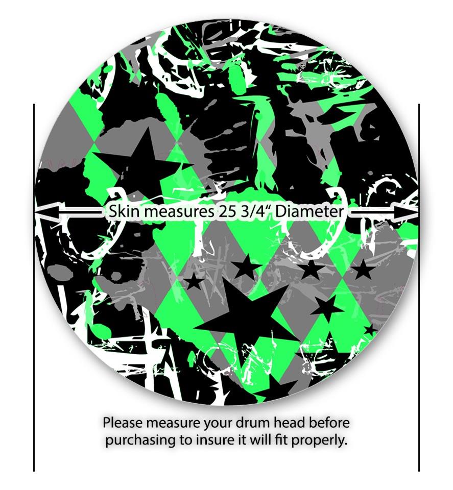 Decal Skin works with most 26" Bass Kick Drum Heads SceneKid Green - DRUM HEAD NOT INCLUDED