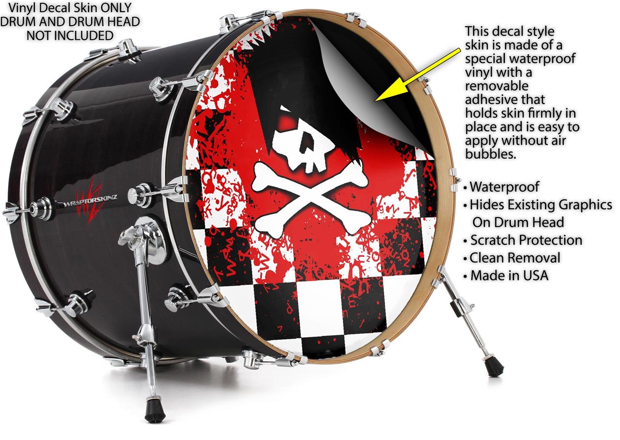 Decal Skin works with most 26" Bass Kick Drum Heads Emo Skull 5 - DRUM HEAD NOT INCLUDED