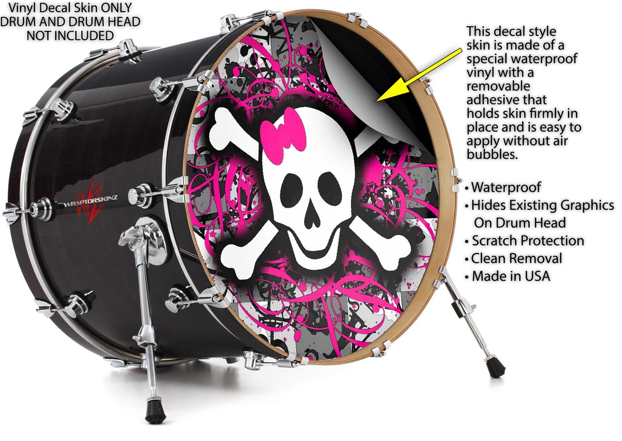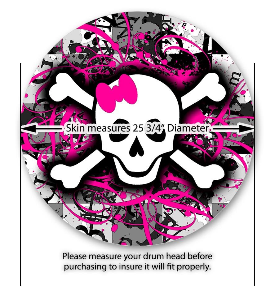 Decal Skin works with most 26" Bass Kick Drum Heads Splatter Girly Skull - DRUM HEAD NOT INCLUDED