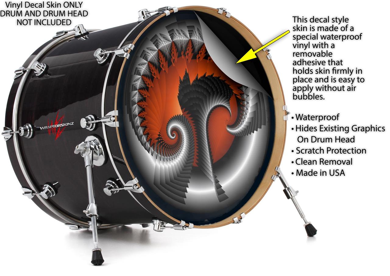 This design also available in other sizes. WraptorSkinz® skin wraps compatible with most kick drum heads. Printed using superb photo quality designs and vibrant colors printed with special fade resistant inks that last even in direct sun for years. WraptorSkinz are a composite three layer commercial grade materials vinyl. The bottom layer is a air release, grey block out removable adhesive that hides existing graphics on the drum head and is easily applied without air bubbles. The middle layer is a flexible vinyl printed with UV protected, fade resistant inks that deliver superb photo quality designs in vibrant colors. Finally, we bond a professional grade laminate over the entire skin adding a glossy protective finish.
