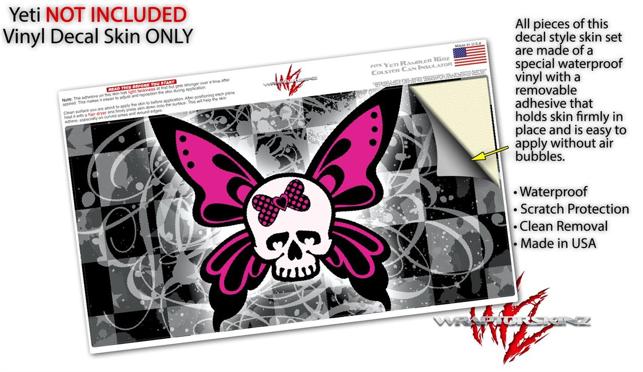 WraptorSkinz Skin Decal Wrap compatible with Yeti 16oz Tall Colster Can Cooler Insulator Skull Butterfly (COOLER NOT INCLUDED)