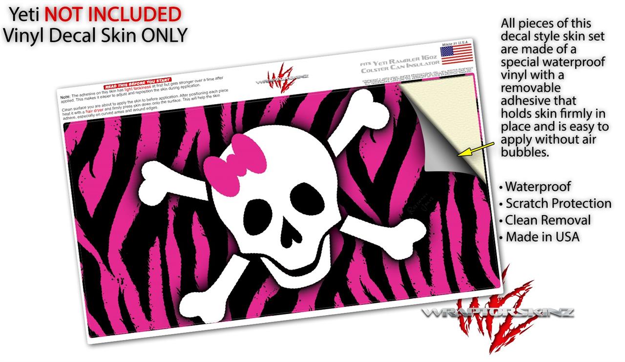 WraptorSkinz Skin Decal Wrap compatible with Yeti 16oz Tall Colster Can Cooler Insulator Pink Zebra Skull (COOLER NOT INCLUDED)