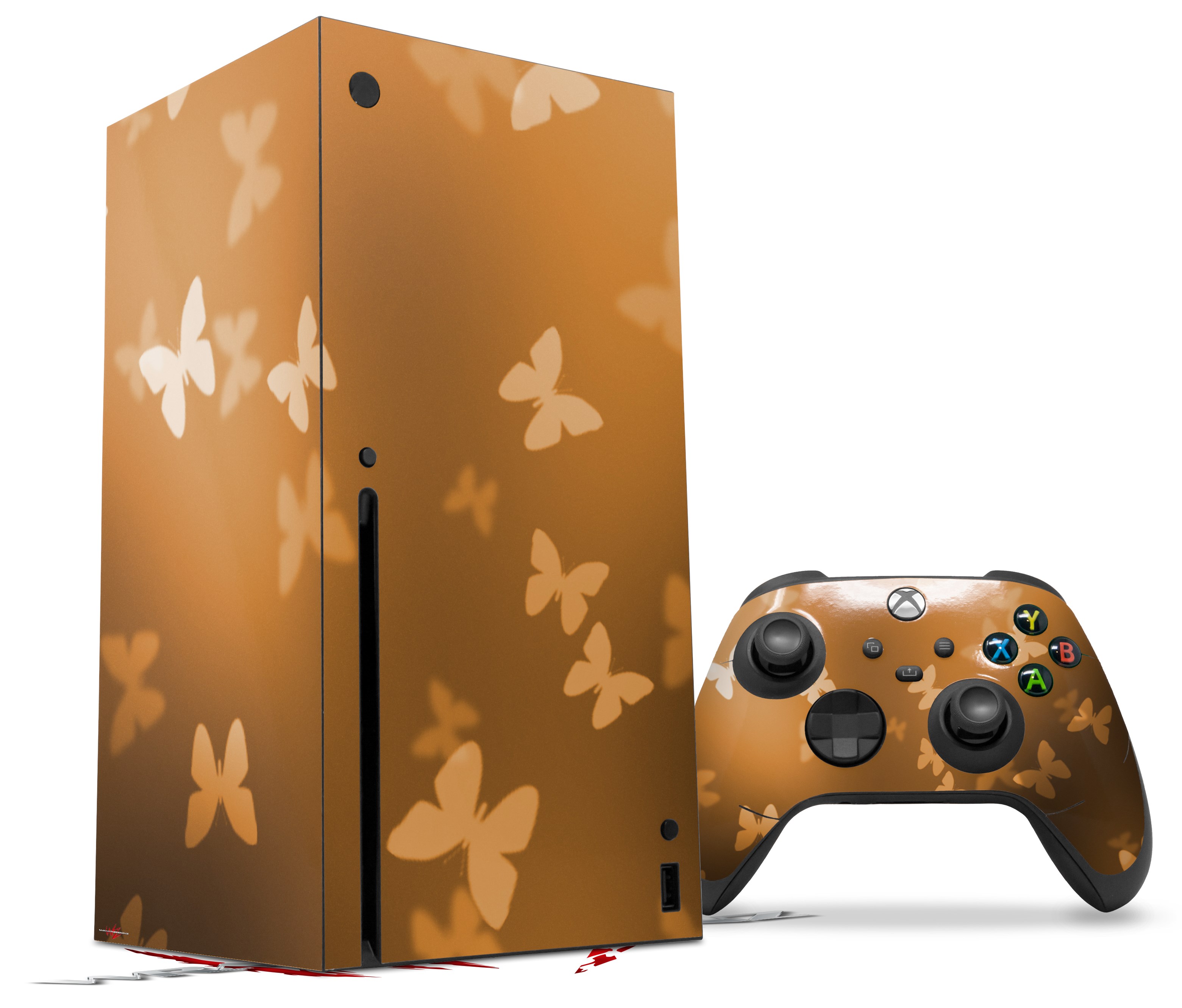 WraptorSkinz Skin Wrap compatible with the 2020 XBOX Series X Console and Controller Bokeh Butterflies Orange (XBOX NOT INCLUDED)
