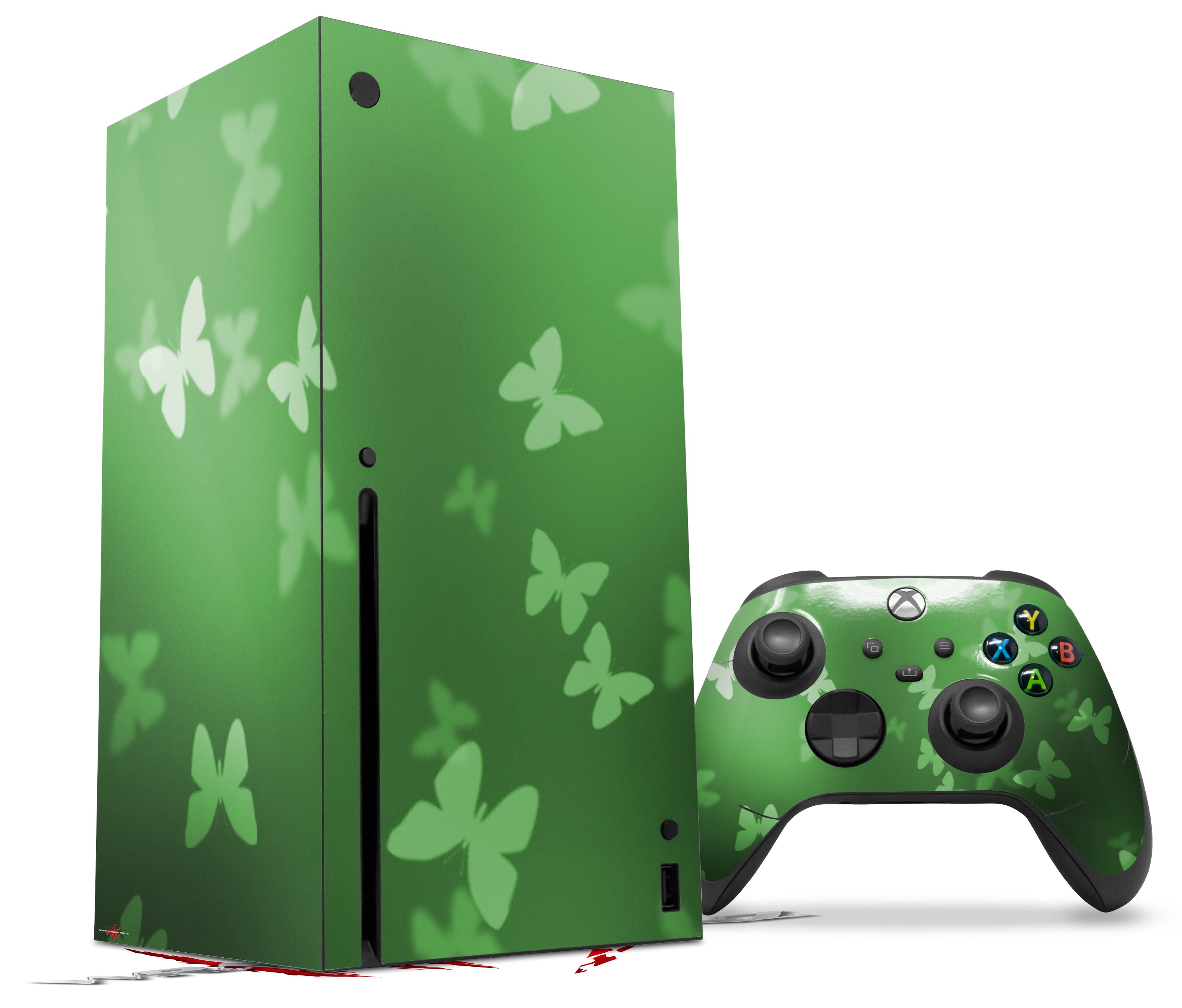 WraptorSkinz Skin Wrap compatible with the 2020 XBOX Series X Console and Controller Bokeh Butterflies Green (XBOX NOT INCLUDED)