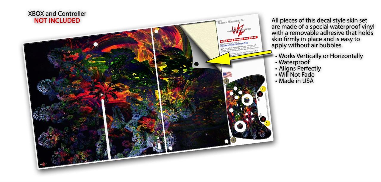 WraptorSkinz® skin wraps for the XBOX Series X gaming console and controller reelase November 2020 are printed using superb photo quality designs and vibrant colors printed with special fade resistant inks that last even in direct sun for years. WraptorSkinz are a composite of two layers of commercial grade materials. The bottom layer is a soft, flexible vinyl with a special removable adhesive that is easily positioned, applied without air bubbles. Next we print the bottom layer with UV protected, fade resistant inks that deliver superb photo quality designs in vibrant colors. Last, we bond a professional grade laminate over the entire skin adding a glossy protective finish. This product is not affiliated with or endorsed by Microsoft or the XBOX brand.