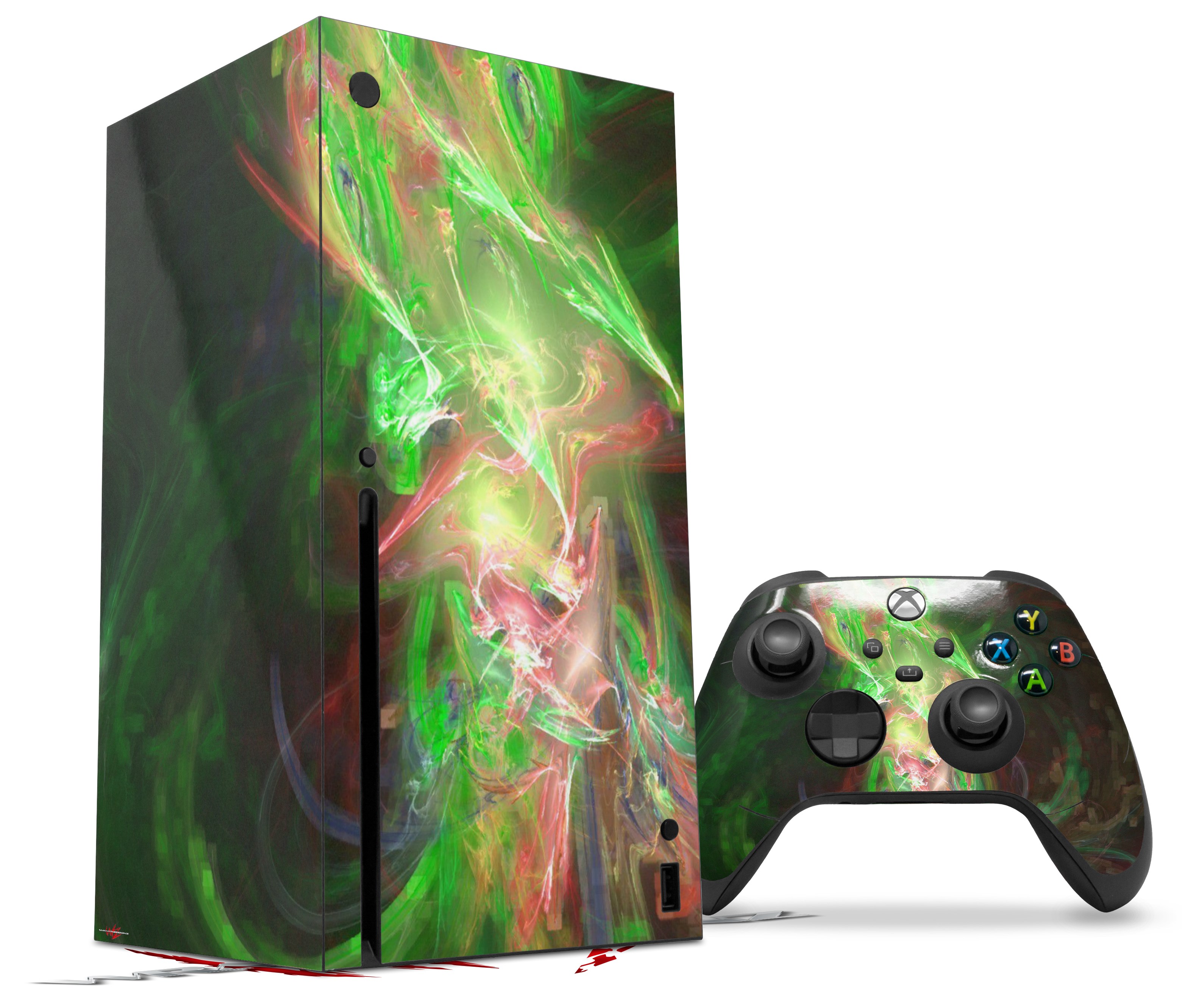 WraptorSkinz® skin wraps for the XBOX Series X gaming console and controller reelase November 2020 are printed using superb photo quality designs and vibrant colors printed with special fade resistant inks that last even in direct sun for years. WraptorSkinz are a composite of two layers of commercial grade materials. The bottom layer is a soft, flexible vinyl with a special removable adhesive that is easily positioned, applied without air bubbles. Next we print the bottom layer with UV protected, fade resistant inks that deliver superb photo quality designs in vibrant colors. Last, we bond a professional grade laminate over the entire skin adding a glossy protective finish. This product is not affiliated with or endorsed by Microsoft or the XBOX brand.
